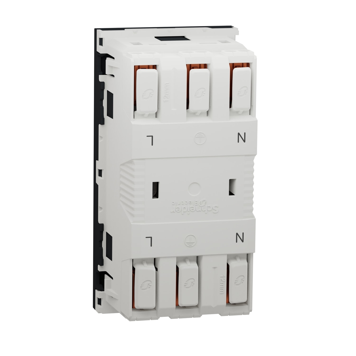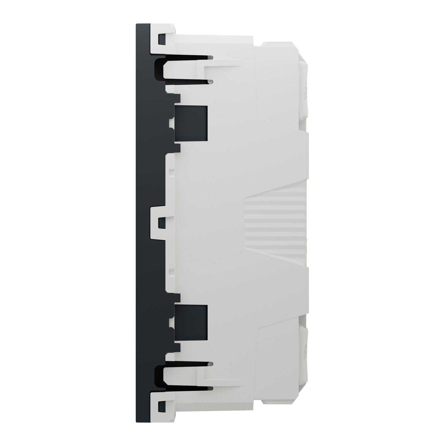 Cette double prise conforme aux normes françaises Unica NU306954 de Schneider Electric est de couleur anthracite et abrite 2 prises. Elle dispose de 2 pôles + contact terre et d'un couvercle avec volet, pour plus de sécurité. La tenue diélectrique, qui mesure la résistance électrique d'un matériau en tant qu'isolant, est de 2 000 V. Son courant nominal est de 16 A. Cette prise se clipse en toute facilité. Son boîtier de montage adapté peut être encastré. Sa finition brillante est très élégante, apportant une touche raffinée aux décorations intérieures soignées. Elle dispose d'un degré de protection IP20 très élevé. En outre, son niveau de protection IK01 contribue à la protection contre les impacts. Très résistante, elle est fabriquée en matériau PC et est certifiée NF. Cette prise de courant est munie de bornes à vis de raccordement. La nouvelle gamme Unica abrite de nouveaux designs, couleurs et matériaux à la délicatesse incomparable : un carré dans un carré, c'est ainsi que l'on pourrait résumer l'esthétisme de la gamme Unica. Mais ça serait passer sous silence la finesse de ses lignes ainsi que la richesse, l'intelligence et la facilité de ses fonctions.