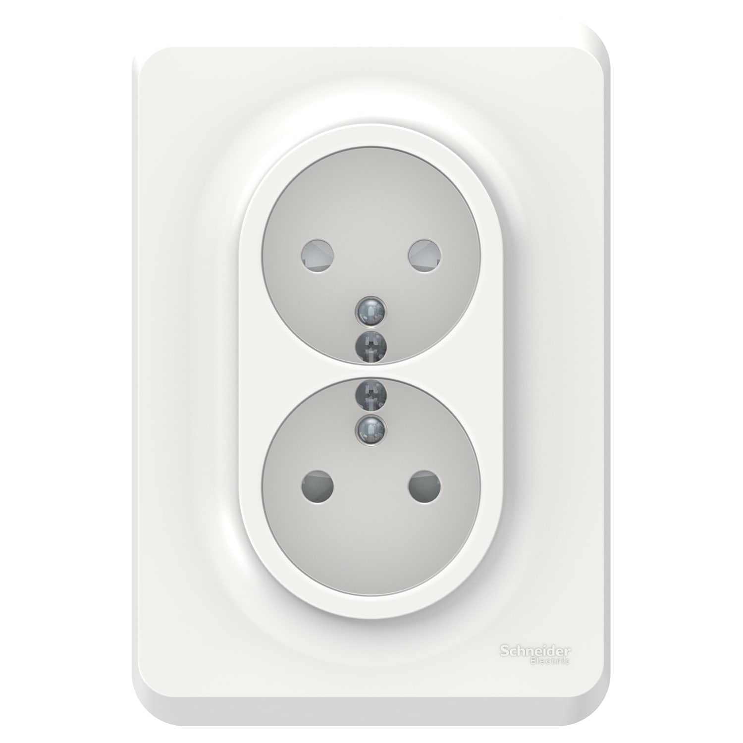 Schneider Electric - Unica - prise double 2P+T pour boîte 1P - FR - vis - Blanc - méca + plaque - NU406918