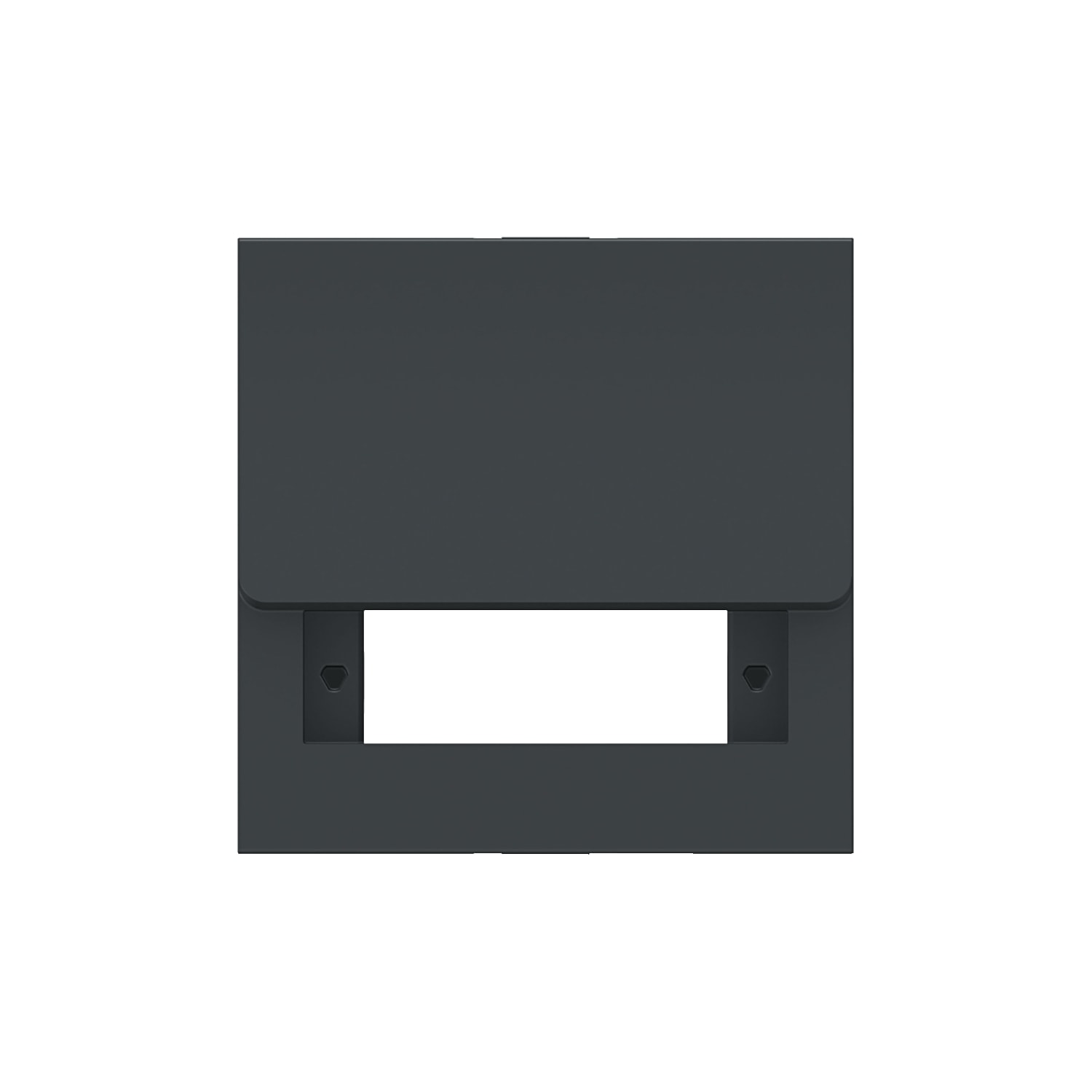 NU943854, en version 2 modules, se compose d'un support avec une finition anthracite, équipé d'une ouverture pouvant accueillir une traversée optique de type SC duplex. La traversée pourra être de type SC duplex MM VDIB6031001/VDIB6031002 ou SC duplex SM VDIB6032001/VDIB6032002 ou SC duplex APC VDIB6082001 ou d'une autre marque.