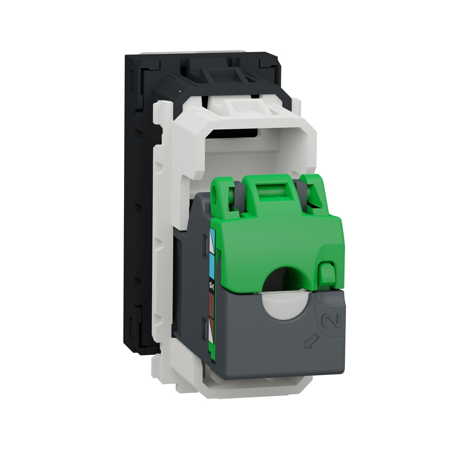 Le connecteur RJ45 se raccorde facilement au câble réseau grâce à son ergonomie : entrée à verrouillage de câble pour maintenir la gaine pendant le câblage, marquage avec couleurs pour identifier rapidement l'emplacement des fils. Les erreurs de câblages sont limitées. Le connecteur en une seule pièce permet d'éviter les pertes d'accessoires et gagner du temps à l'installation. Un bouton pour réouvrir le connecteur en cas d'erreur est facilement accessible. Le volet de protection du support limitera l'accumulation de poussières et donnera un aspect esthétique à la fonction. Son porte étiquette permettra d'identifier facilement la prise.