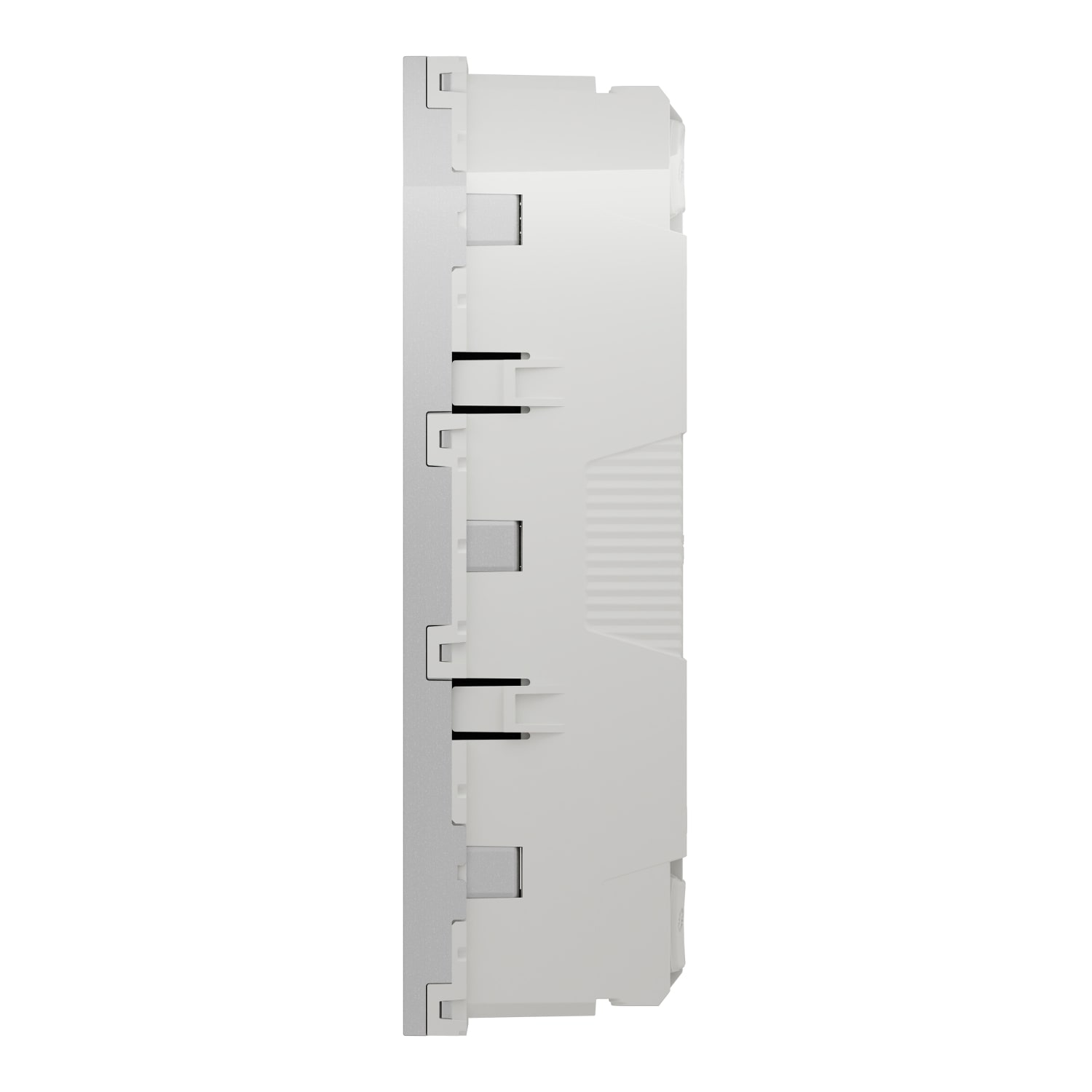 Cette triple prise conforme aux normes françaises Unica NU307930 de Schneider Electric est de couleur aluminium et offre 3 prises. Elle dispose de 2 pôles + contact terre, et d'un couvercle avec volet, pour plus de sécurité. La tenue diélectrique, qui mesure la résistance électrique d'un matériau en tant qu'isolant, est de 2 000 V. Son courant nominal est de 16 A. Cette prise se clipse en toute facilité. Son boîtier de montage adapté peut être encastré. Sa finition brillante est très élégante, apportant une touche raffinée aux décorations intérieures soignées. Elle dispose d'un degré de protection IP21D très élevé. En outre, son niveau de protection IK04 contribue à la protection contre les impacts. Cette prise de courant est munie de bornes à vis de raccordement. Très résistante, elle est fabriquée en matériau PC et est certifiée NF. Produit écologique de qualité supérieure, elle est fabriquée dans le respect de l'environnement, sans substances préoccupantes ni mercure. La nouvelle gamme Unica abrite de nouveaux designs, couleurs et matériaux à la délicatesse incomparable : un carré dans un carré, c'est ainsi que l'on pourrait résumer l'esthétisme de la gamme Unica. Mais ça serait passer sous silence la finesse de ses lignes ainsi que la richesse, l'intelligence et la facilité de ses fonctions.
