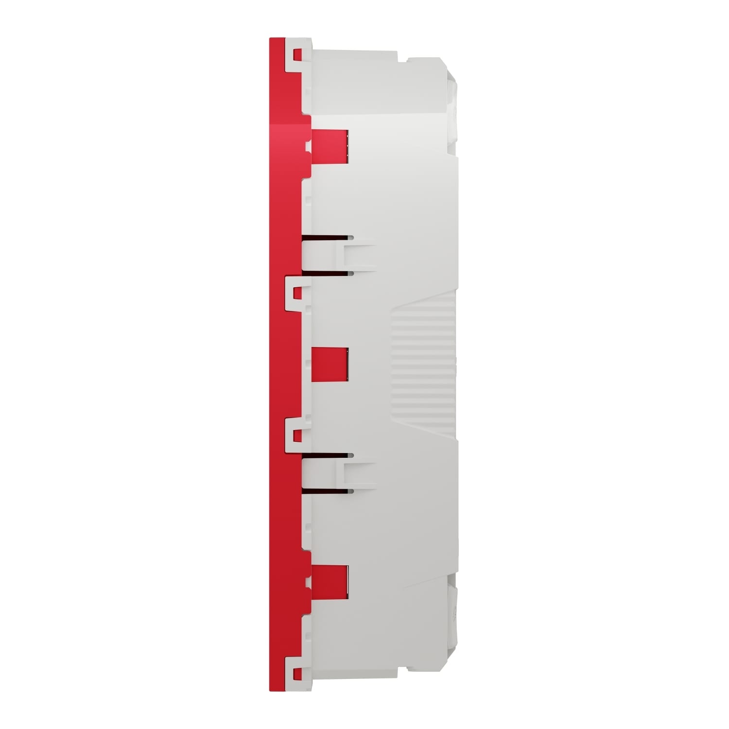 Cette triple prise conforme aux normes françaises Unica NU307903 de Schneider Electric est de couleur rouge et abrite 3 prises de courant. Cette prise dispose de 2 pôles + contact terre et d'un volet pour plus de sécurité. La tenue diélectrique, qui mesure la résistance électrique d'un matériau en tant qu'isolant, est de 2 000 V. Son courant nominal est de 16 A. Cette prise se clipse en toute facilité. Son boîtier de montage adapté peut être encastré. Sa finition brillante est très élégante, apportant une touche raffinée aux décorations intérieures soignées. Elle dispose d'un degré de protection IP21D très élevé. En outre, son niveau de protection IK04 contribue à la protection contre les impacts. Très résistante, elle est fabriquée en matériau PC et est certifiée NF. Cette prise de courant est munie de bornes à vis de raccordement. Produit écologique de qualité supérieure, elle est fabriquée dans le respect de l'environnement, sans substances préoccupantes. La nouvelle gamme Unica abrite de nouveaux designs, couleurs et matériaux à la délicatesse incomparable : un carré dans un carré, c'est ainsi que l'on pourrait résumer l'esthétisme de la gamme Unica. Mais ça serait passer sous silence la finesse de ses lignes ainsi que la richesse, l'intelligence et la facilité de ses fonctions.