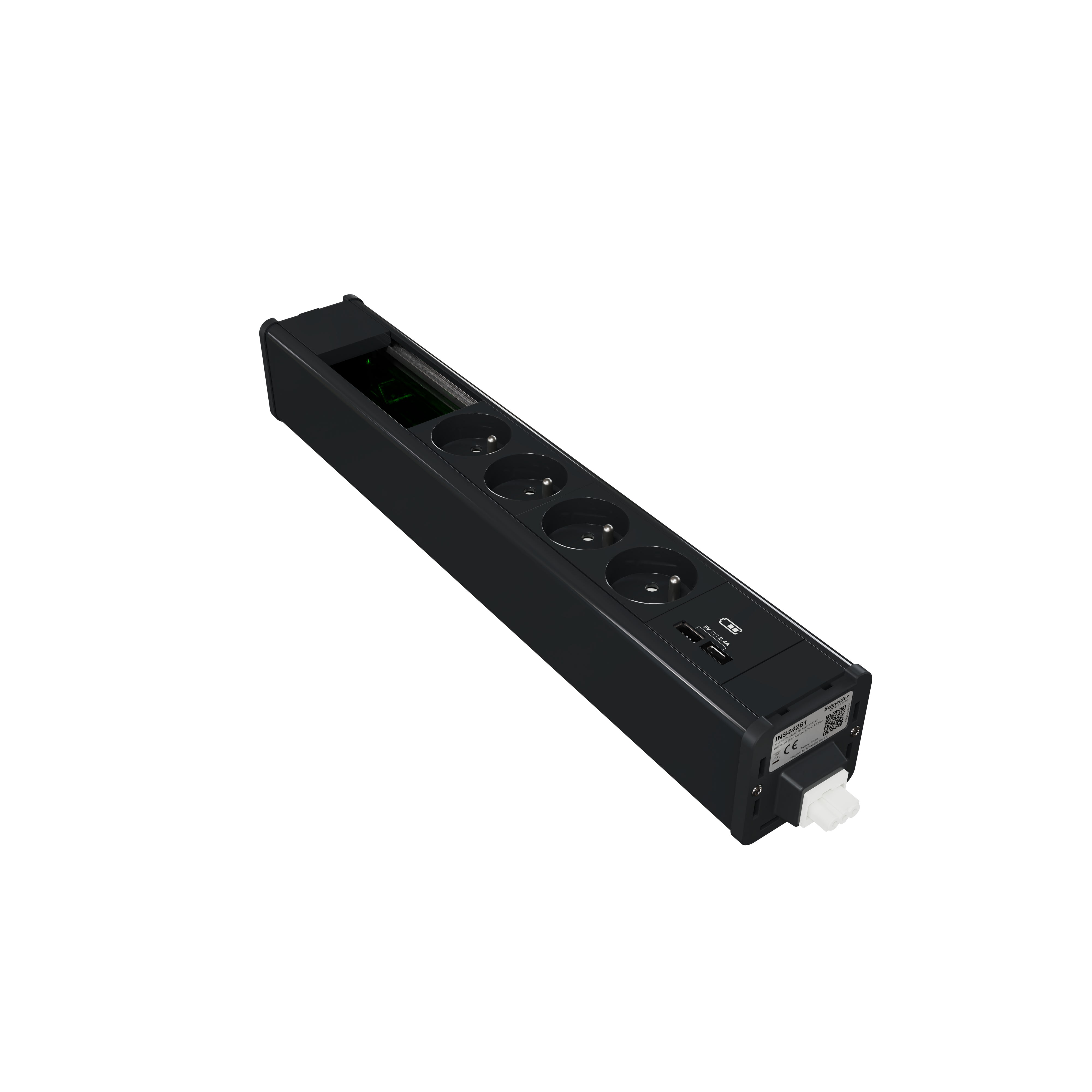 Découvrez les produits de la gamme Unica System+, la nouvelle génération des systèmes d’installations ! Esthétique, flexible, évolutive, ingénieuse, Unica System+ est rapide à installer et facile à utiliser pour répondre aux nouveaux environnements de travail (au bureau, à la maison) et dans tous les espaces accueillant du public Ce module de bureau M pré-configuré et pré-câblé (type nourrice) Unica System+ propose 4 prises de courant 2P+T, 2 ports USB type A et C et 2 emplacements pour prise Unica (RJ45 ou multimédia sur 45x90mm) Il est en matière aluminium de couleur anthracite Les prises Unica qui le composent sont de couleur anthracite Peut être installé sur colonne, colonnette ou sur le mobilier en utilisant des kits de finitions et de fixation disponibles séparément Il peut être fixé par serrage sans perçage sur le mobilier et peut ainsi être déplacé et repositionné si besoin Il peut également être vissé sur le mobilier pour une installation permanente Unité précâblée avec connexion rapide (Mini-Wieland) pour alimenter chaque extrémité Plusieurs blocs nourrices peuvent être rapidement connectés les unes aux autres, en utilisant un seul et même circuit d'alimentation, garantissant ainsi l'évolutivité de l'installation Puissance: 16 A / 250 V, USB 5 V / 2,4 A Longueur 421mm - Largeur 64mm - Hauteur 64mm Les solutions Unica System+ ont été conçues pour les espaces tertiaires et résidentiels où l'accès à des prises pour brancher ses équipements (PC, tablette, smartphone, etc) se développe de plus en plus Ces espaces incluent les bureaux, les écoles, les hôtels, les gares, les commerces, la cuisine à la maison ou le coin bureau et finalement tous les nouveaux espaces de travail, d'attentes ou de détentes Combinez les produits de cette gamme pour créer des espaces de travail uniques