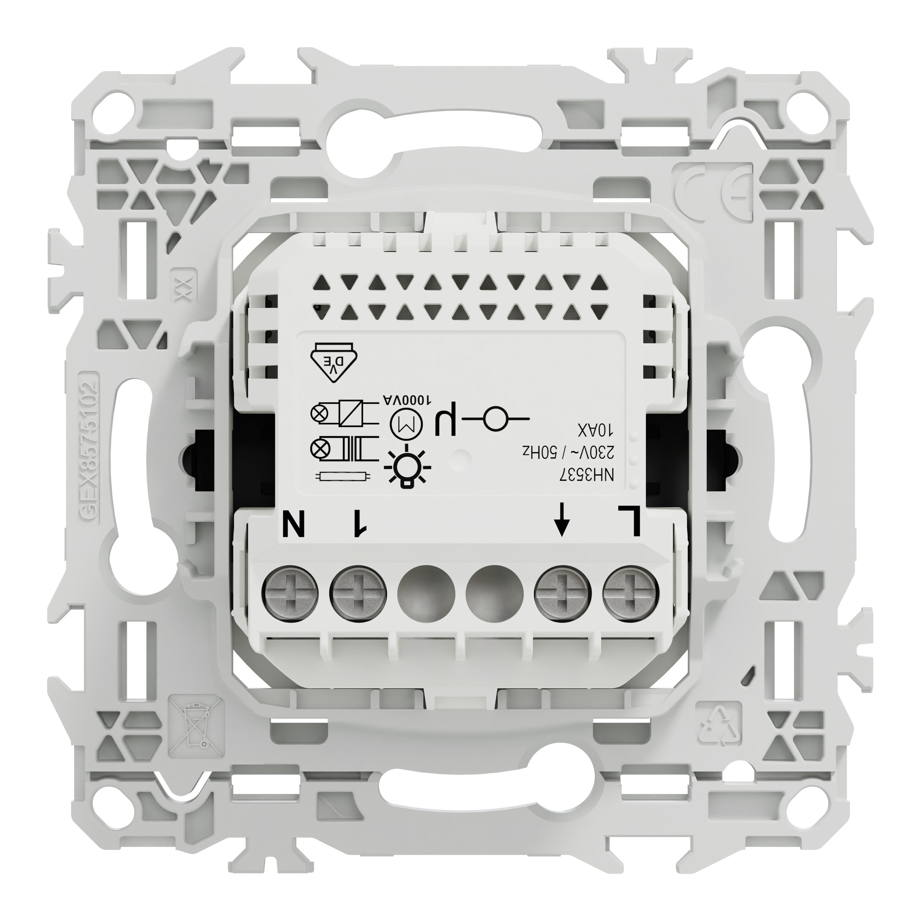 La fixation du mécanisme est facile et robuste sur tout type de boîte d'encastrement grâce à son support rigide. Il offre une automatisation facile, grâce à des scénarios qui déclenchent des actions automatiquement ou selon un horaire prédéfini.