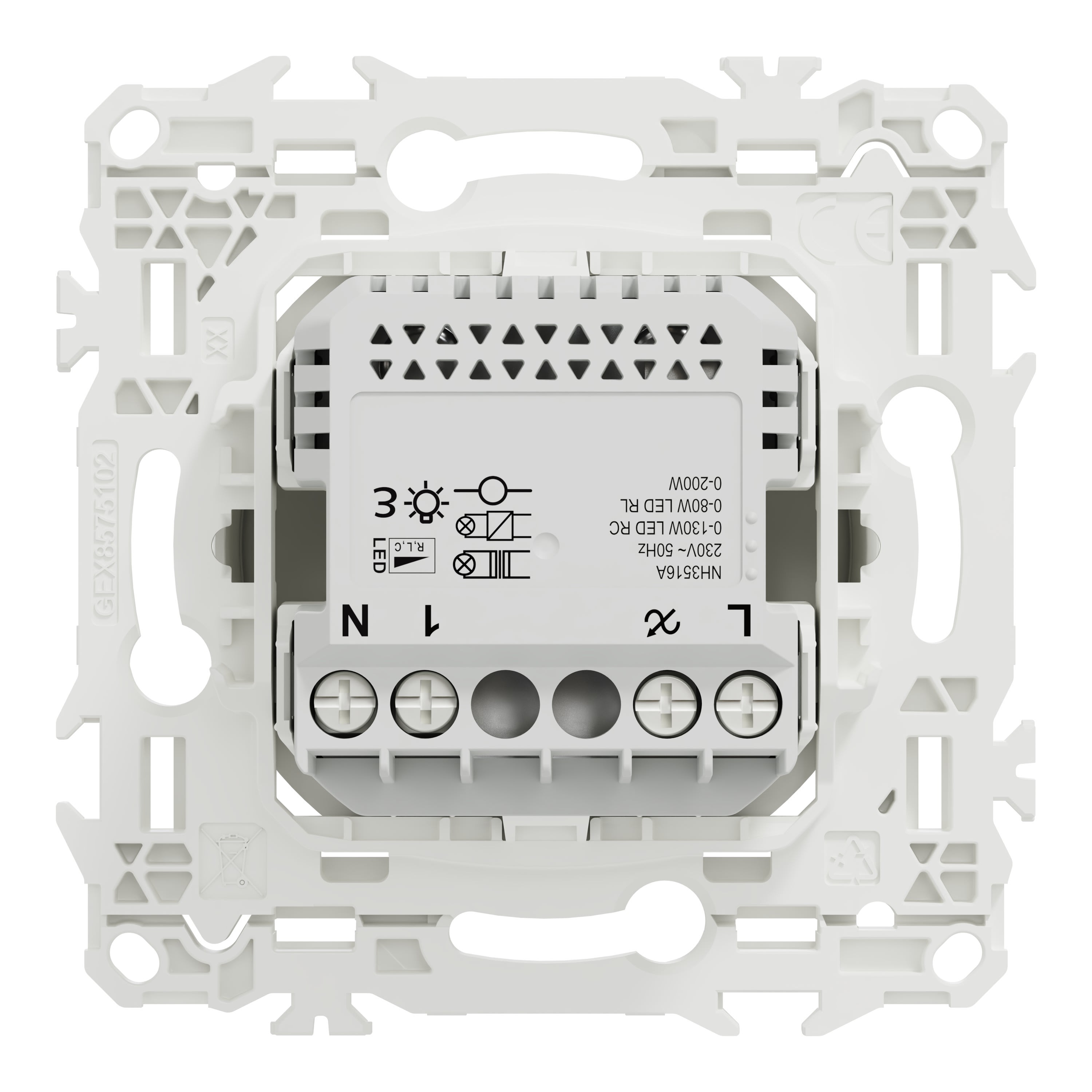 Avec sa luminosité ajustable, ce variateur permet de personnaliser l'ambiance. Compatible avec l’application Wiser, il est également pilotable via les assistants vocaux.