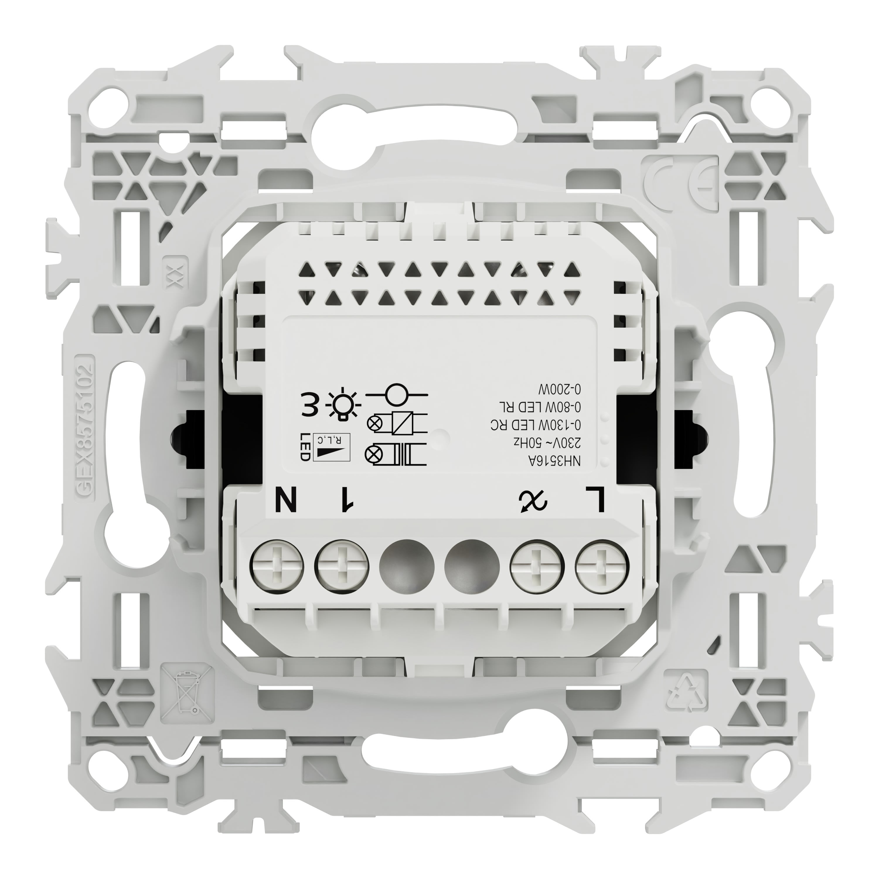 Avec sa luminosité ajustable, ce variateur permet de personnaliser l'ambiance. Compatible avec l’application Wiser, il est également pilotable via les assistants vocaux.