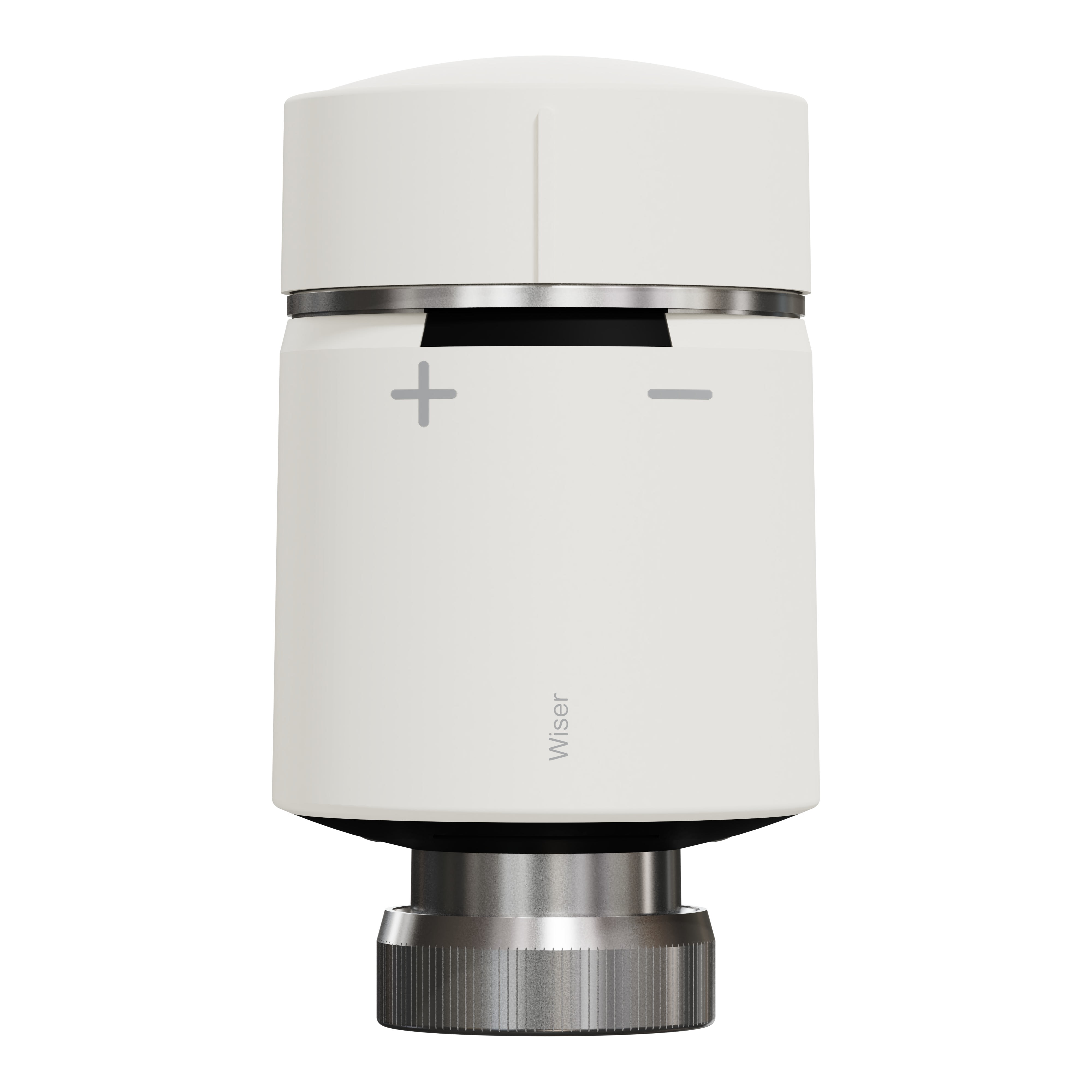La tête de vanne thermostatique Wiser permet de piloter un chauffage à boucle d'eau chaude. Elle assure le pilotage des radiateurs à boucle d'eau chaude via un thermostat sans fil, un assistant vocal ou un smartphone avec l'app Wiser Home mais également en local en tournant manuellement. Cet appareil possède une sonde de température pour piloter la chauffe selon la température demandée. Elle peut également être piloté par un thermostat Wiser pour une température réelle de la pièce.