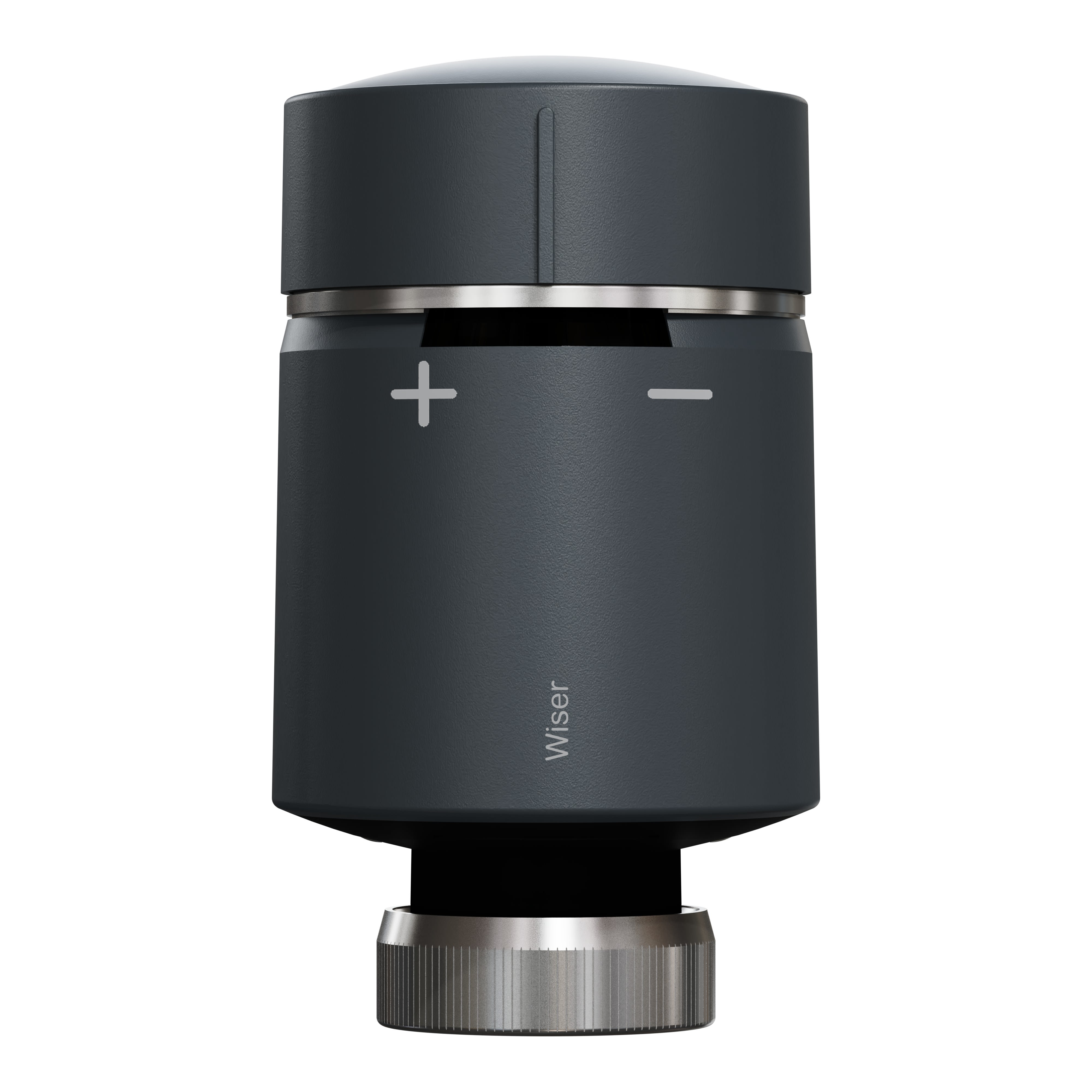 Wiser - tête de vanne thermostatique connectée - commande manuelle ou à distance - liaison zigbee 2,4GHz - livrée avec 2 piles, 1 adapteur pour vanne Danfoss RA et 1 écrou M30 x 1,5 - réglage de 5 à 30°C - 3 LED - Anthracite