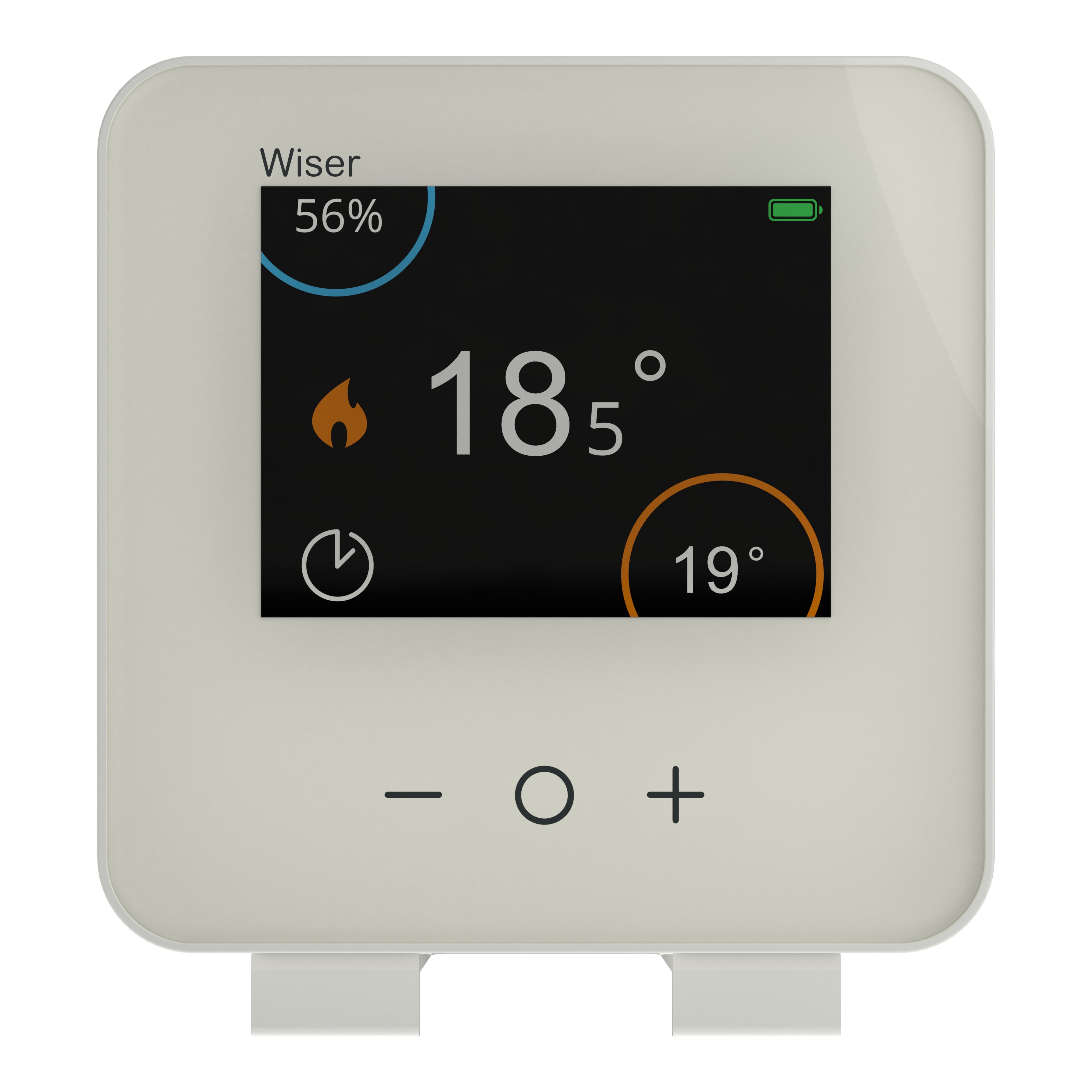 Le thermostat Wiser sans fils permet de piloter un contrôleur de chauffage Wiser (chaudière, vanne thermostatique ou encore chauffage électrique). Il a une fonction centrale dans la gestion du chauffage. C'est lui qui capte la température et le niveau d'humidité de la pièce pour envoyer l'information de chauffe à un contrôleur de chauffage Wiser. Il permet aux usagers de régler la température souhaitée, globalement dans le logement ou pièce par pièce selon la configuration du système installé.
