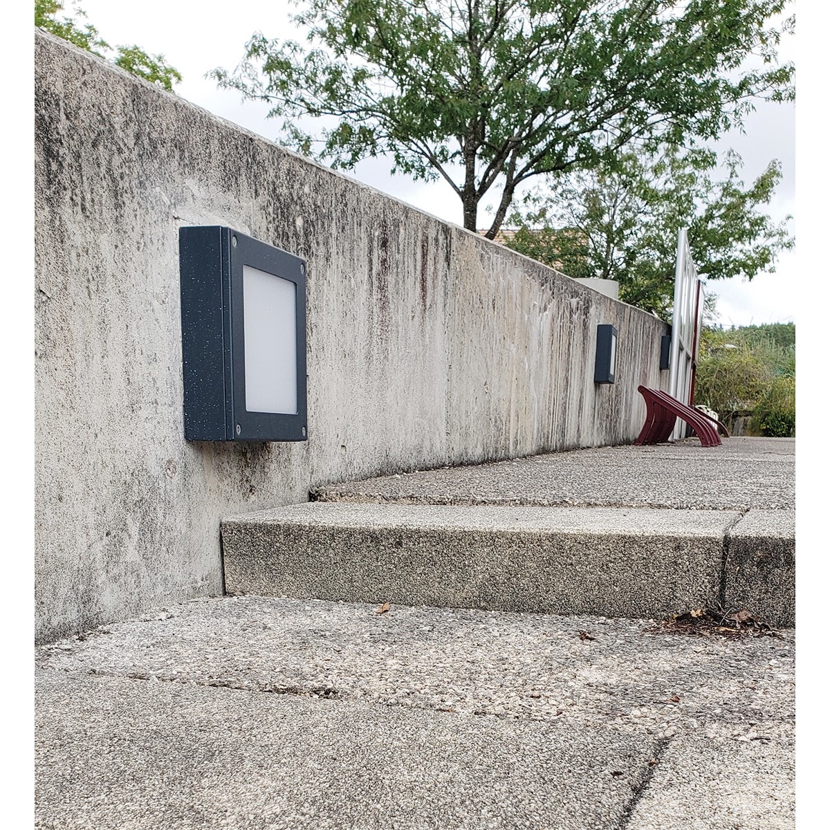 Luminaire architectural à diffuseur rasant, résistant à l'hypervandalisme IK11+ 80JIP65Carré (315x315x85mm), pose appliqueCorps et cadre en aciez EZ-peinture polyester poudrée, diffuseur polycarbonate opalescentFermeture par vis inox antivandalesFabrication française certifiée Origine France Garantie