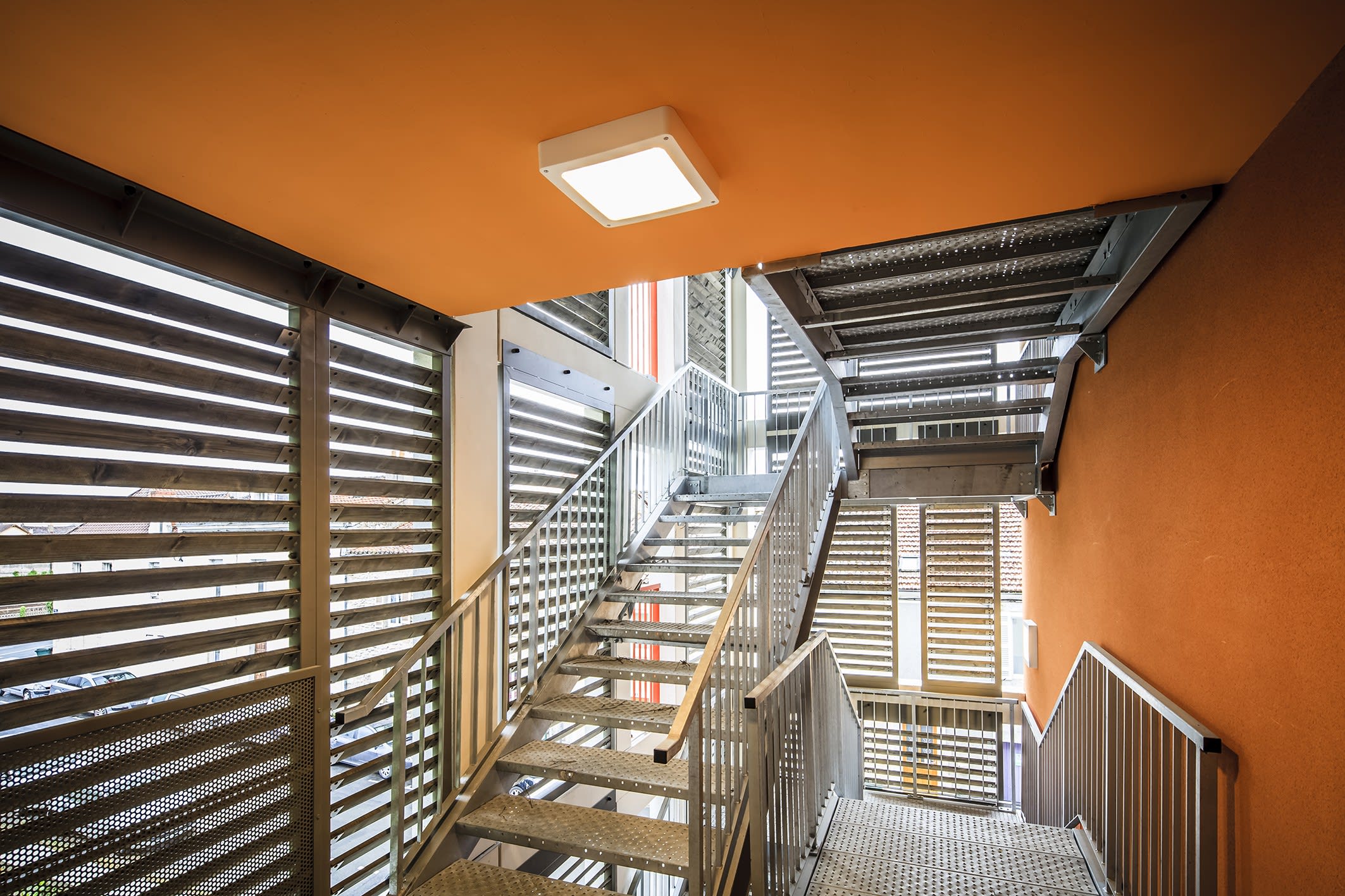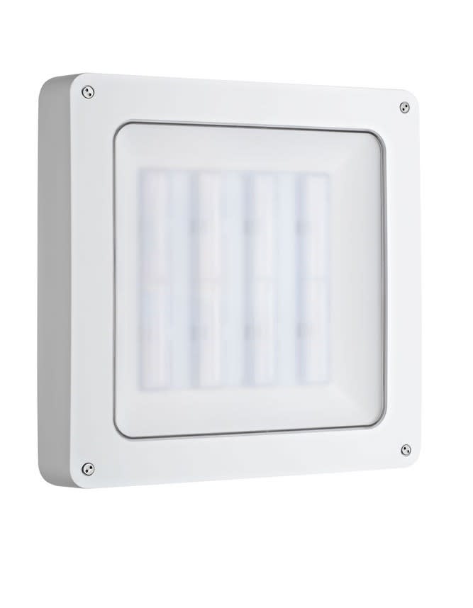 Luminaire éco-conçu, à lumière dirigée et à haute efficacité pour l’éclairage des logements collectifs et ERPRecyclé, résistant, réparableIK10 20J, VK25, IP55Luminaire carré (350 x 350 x 65 mm), base en polycarbonate, diffuseur clairFabrication française certifiée Origine France Garantie