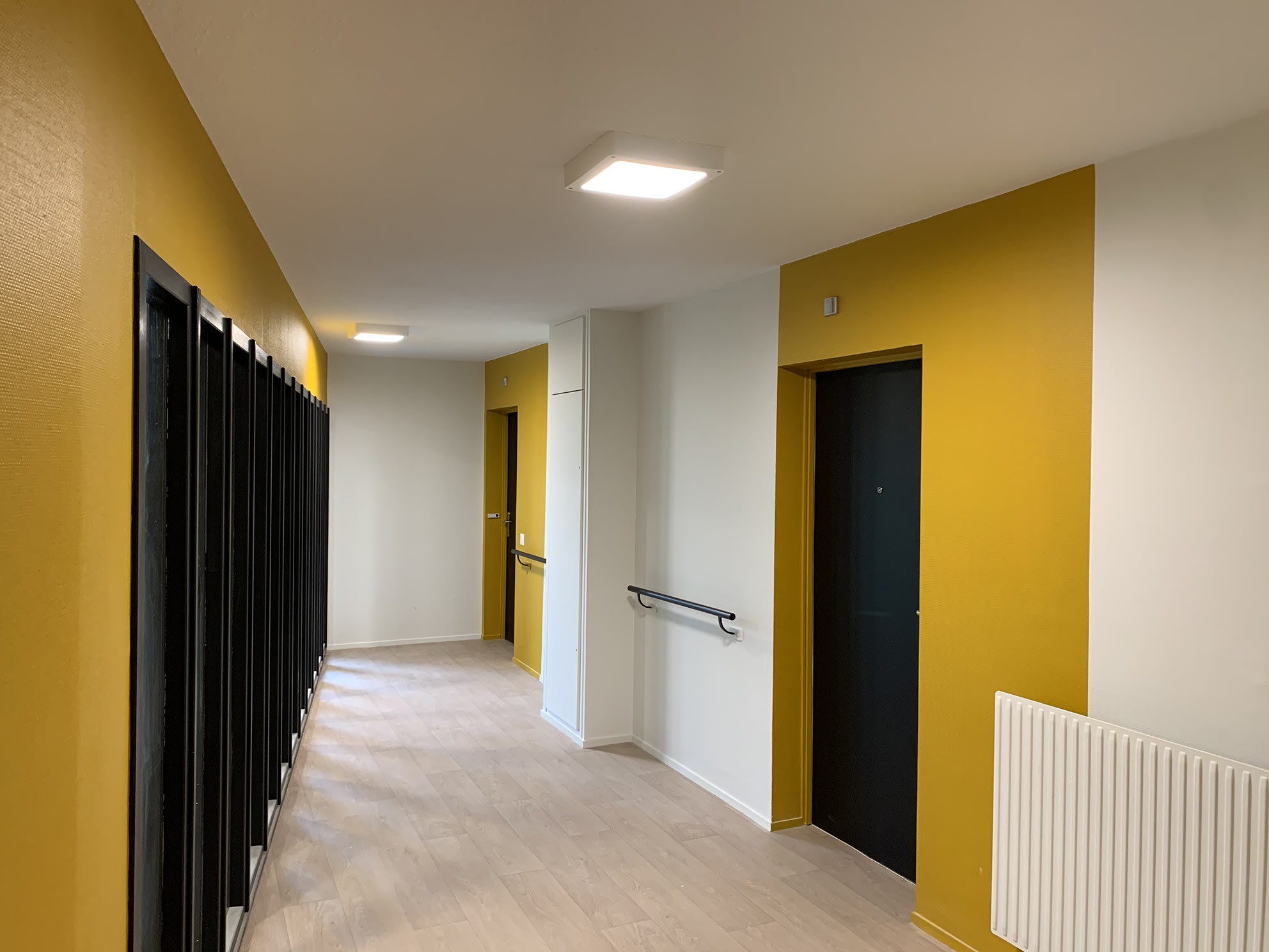 Luminaire éco-conçu, à lumière dirigée et à haute efficacité pour l’éclairage des logements collectifs et ERPRecyclé, résistant, réparableIK10 20J, VK25, IP55Luminaire carré (350 x 350 x 65 mm), base en polycarbonate, diffuseur clairFabrication française certifiée Origine France Garantie