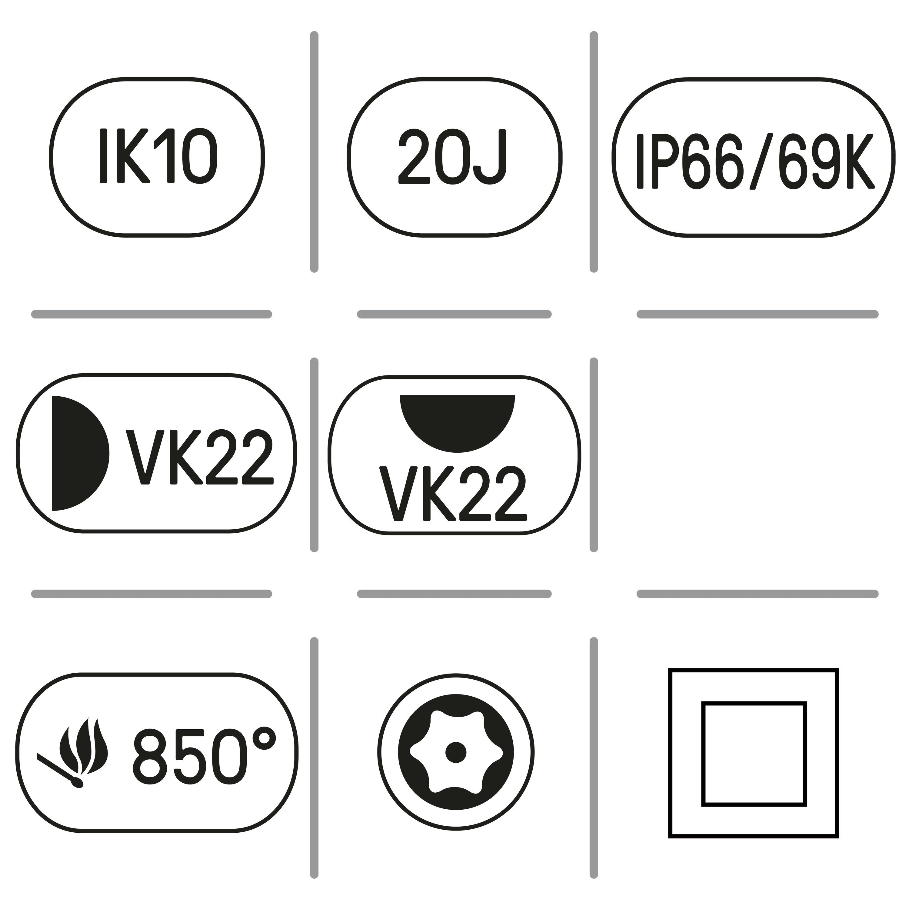 Sa fermeture est assurée par des vis et son support de fixation est antivandale, garantissant une sécurité renforcée.