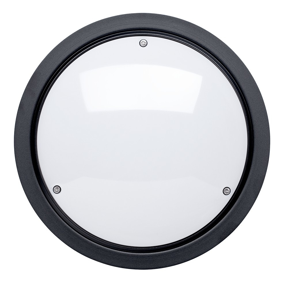 Hublot RONDO LED Noir diffuseur opalescent polycarbonate Ø370mm IK11++/120 j IP66 2200lm 4000K vis inox antivandale avec détection Pro version encastrée