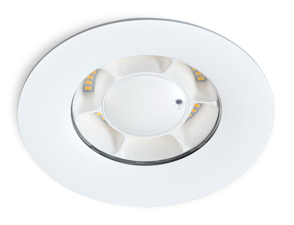 Discret et compact grâce à son design fluide, le SENSPOT peut être installé dans des plafonds à faible profondeur d'encastrement, avec une hauteur réduite de 70 mm.