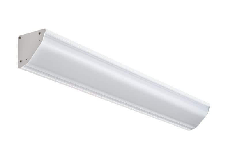 Luminaire d'angle conçu pour former un ruban lumineuxRésistant aux chocs IK10 20J, IP42, système d'ouverture sécurisée avec outil dédiéCorps et embouts aluminium laqué blanc, diffuseur polycarbonate opalescentLongueurs de 615 à 1475mmFabrication française certifiée Origine France Garantie