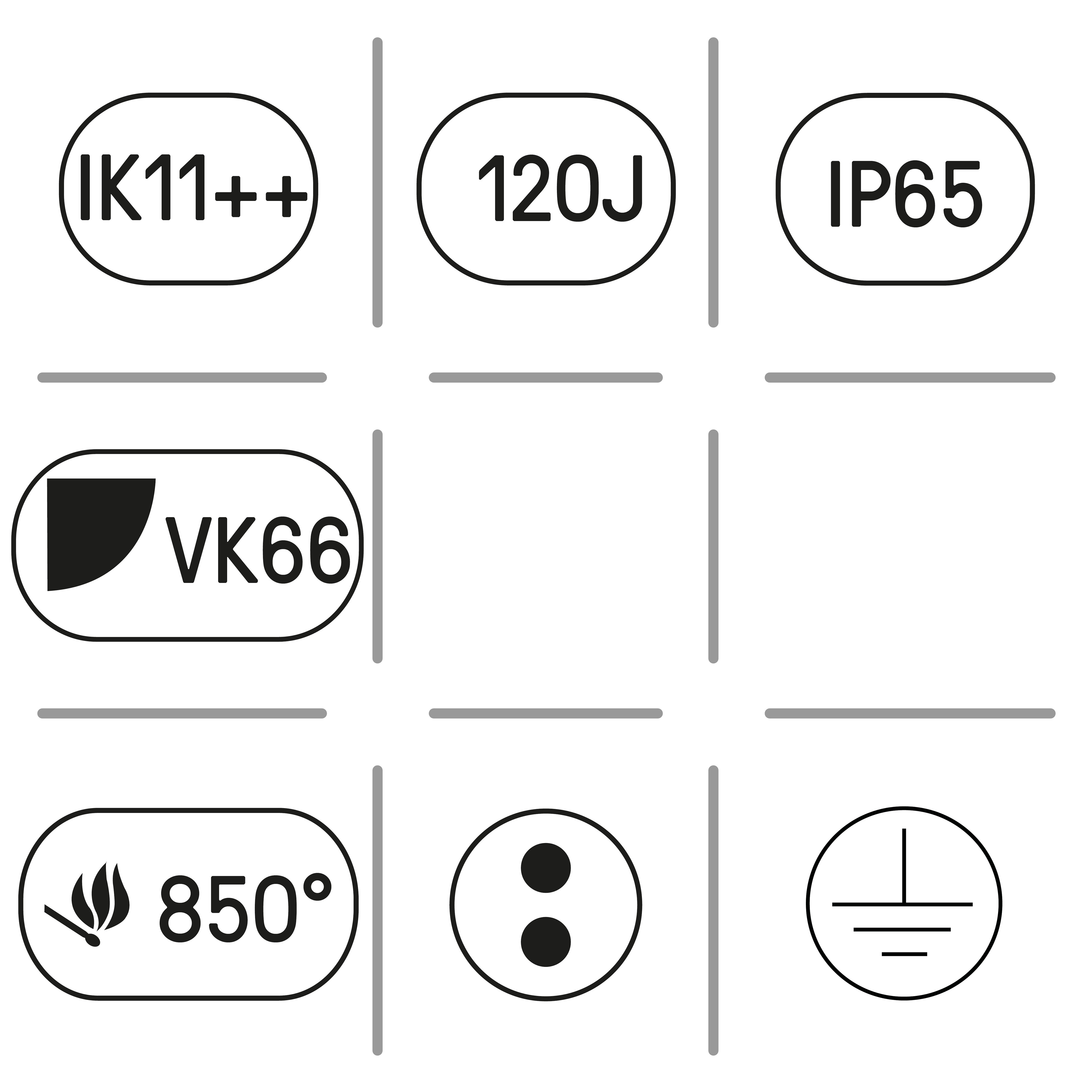 Luminaire en acier conçu pur les lieux et souterrains soumis à l'hypervandalisme, IK11++ 120J, IP65Angle 30°, corps et cadre en acier EZ, diffuseur contreventé polycarbonate opalescentFermeture par vis inox antivandalesFabrication française certifiée Origine France Garantie