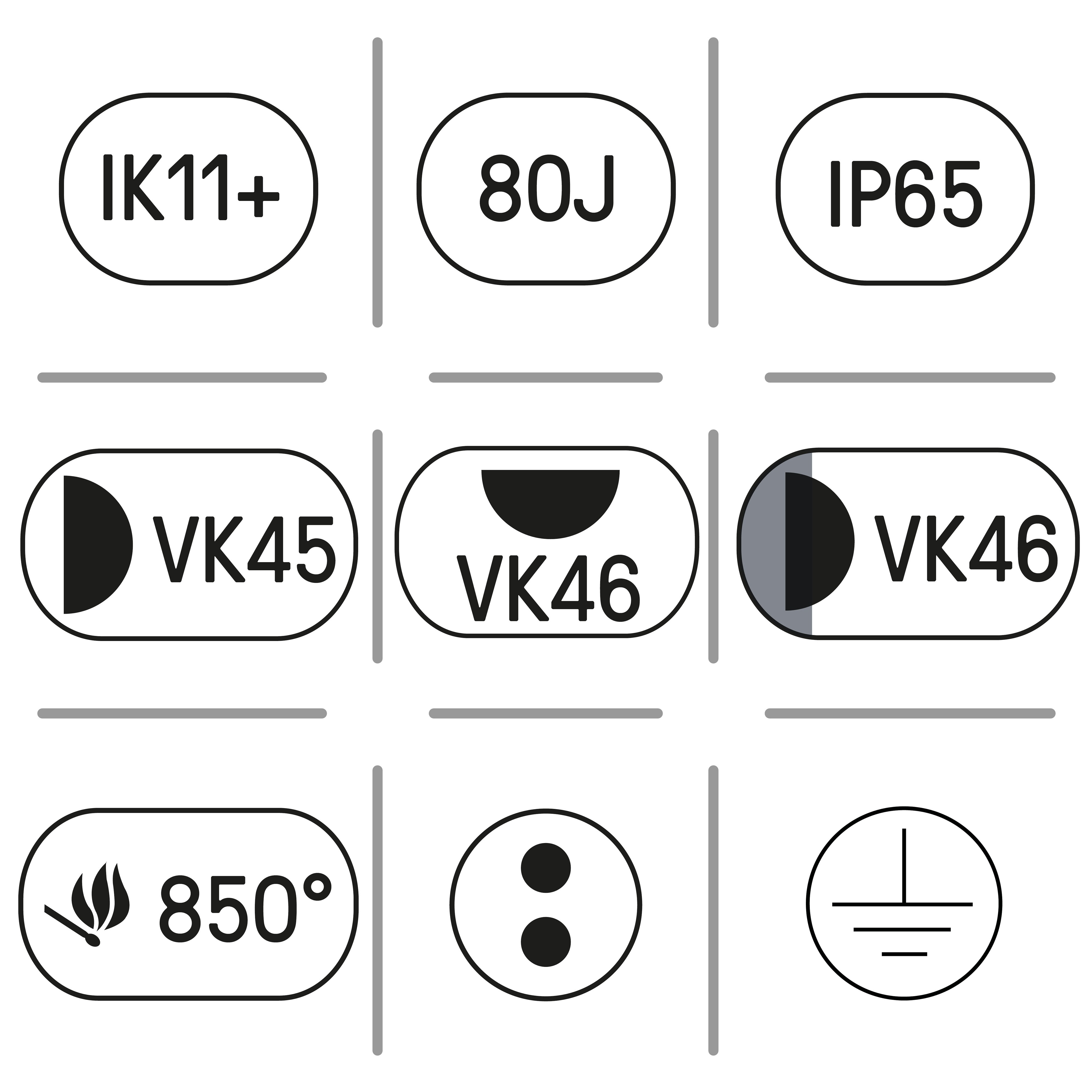 Luminaire architectural très compact résistant à l'hypervandalisme, IK11+ 80J, IP65Corps et cadre en acier EZEncastré : corps et cadre en inox 304L peintDiffuseur polycarbonate plat opalescentVisserie inox antivandaleFabrication française certifiée Origine France Garantie