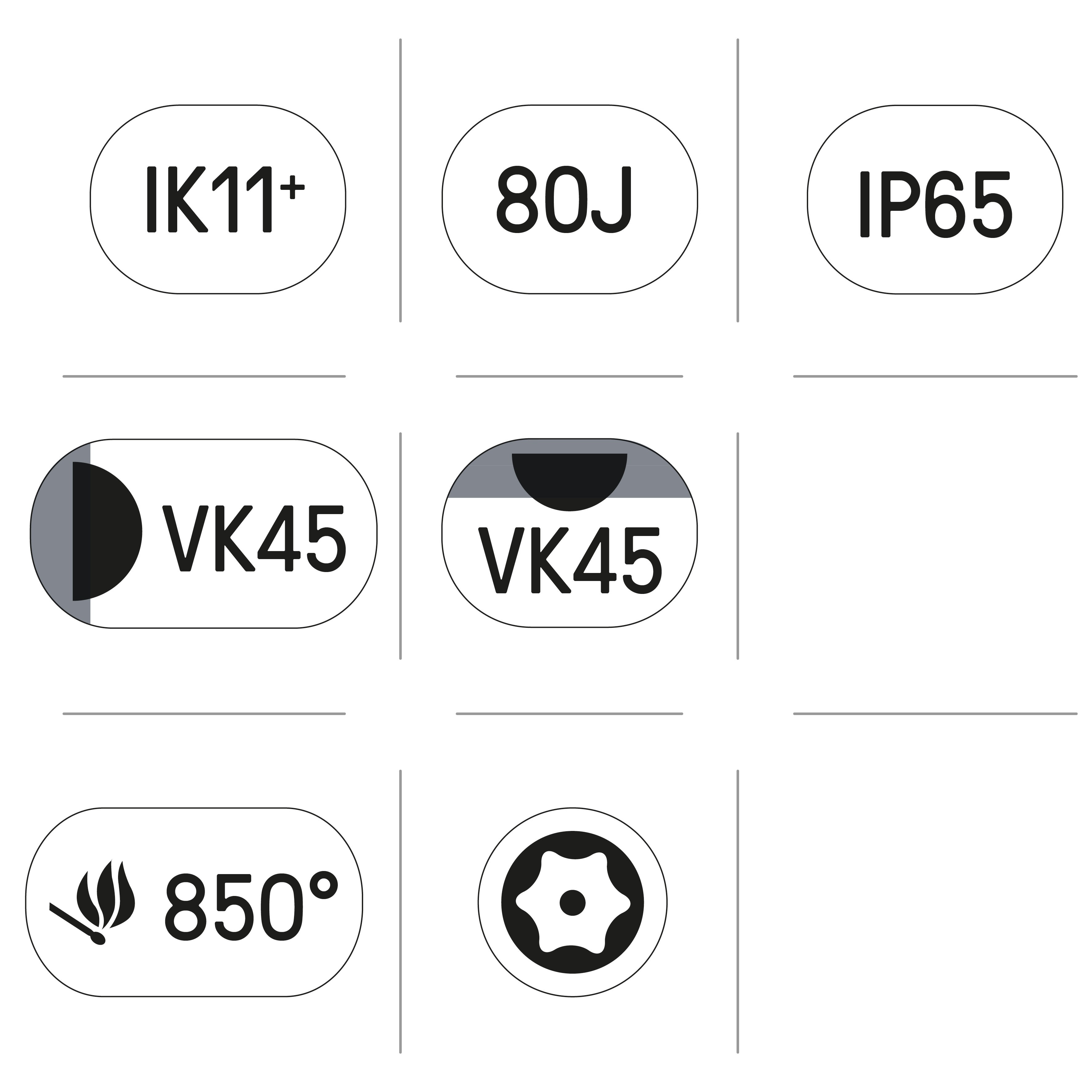 Luminaire en acier conçu pour les lieux et souterrains soumis à l'hypervandalisme, IK11++ 120J, IP65Version encastrée : corps et cadre en inox 304L peint ou version tout inox brossé 316L, diffuseur polycarbonate opalescentVisserie inox antivandaleFabrication française certifiée Origine France Garantie