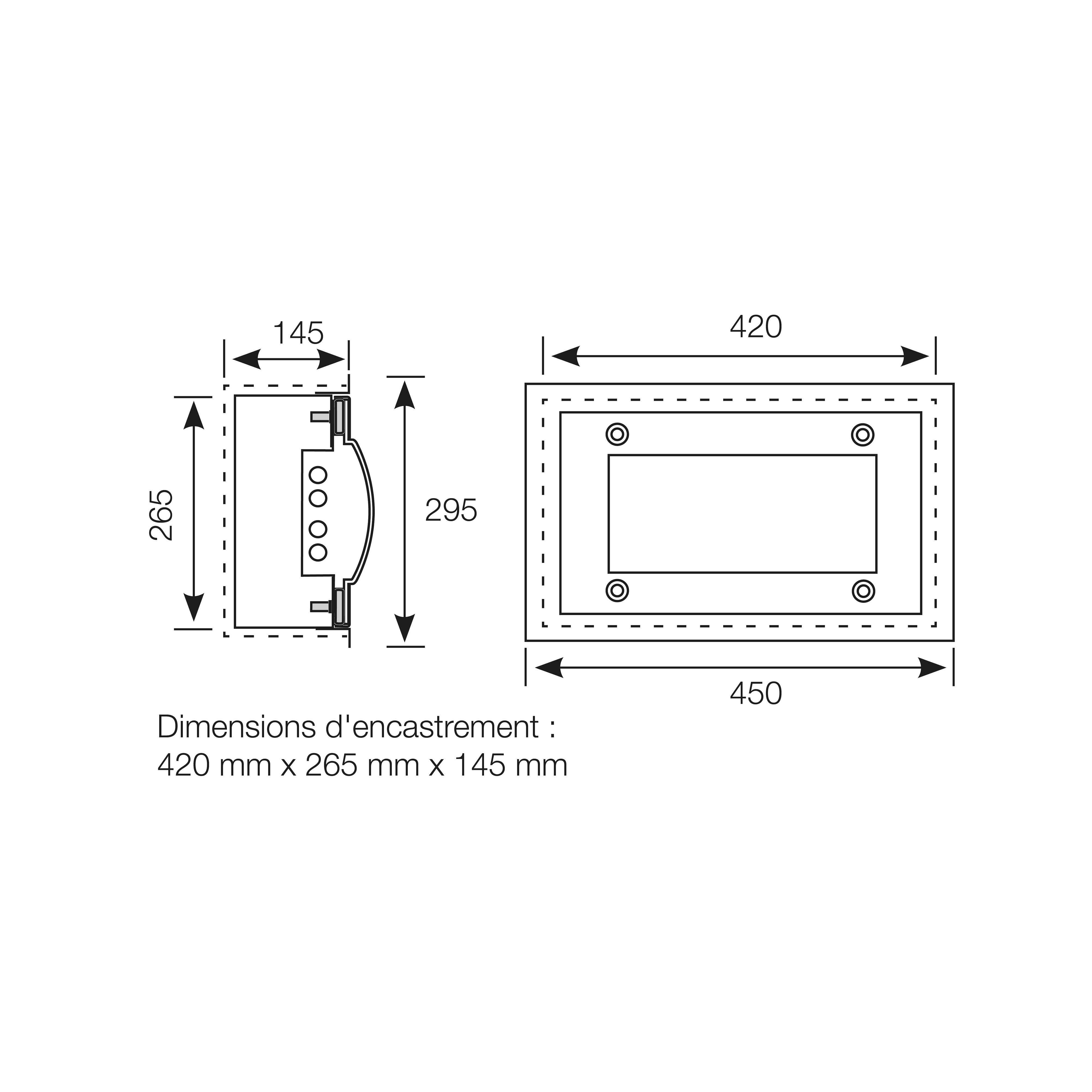 Luminaire compact antivandalisme de forte puissance, IK11++ 120J, IP65Version encastrée : corps et cadre en inox 304L peint, diffuseur polycarbonate opalescentFermeture par vis inox antivandalismeFabrication française certifiée Origine France Garantie