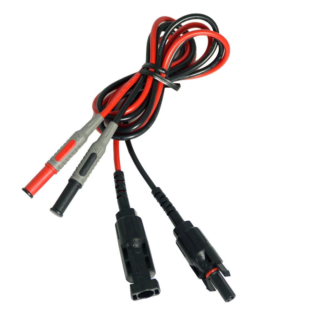 Cordon de test pour application photovoltaiques avec connecteur MC4 vers fiches bananes. Il permet le raccordement d'un appareil de mesure sur une installation photovoltaïque