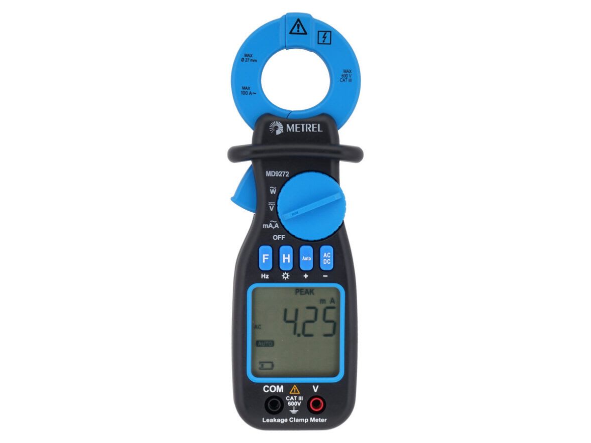 La MD 9272 est une pince de mesure des fuites à la terre unique en son genre. Elle permet non seulement de lire avec précision le courant de fuite TRMS AC d'un système, mais aussi de détecter les pertes dans le système et d'en suggérer les causes possibles. Les mesures de tension, de puissance, d'harmoniques, de facteur de puissance (PF), de distorsion harmonique totale (THD) et de facteur de crête font de cet instrument un outil adapté à tous les électriciens et services de maintenance.