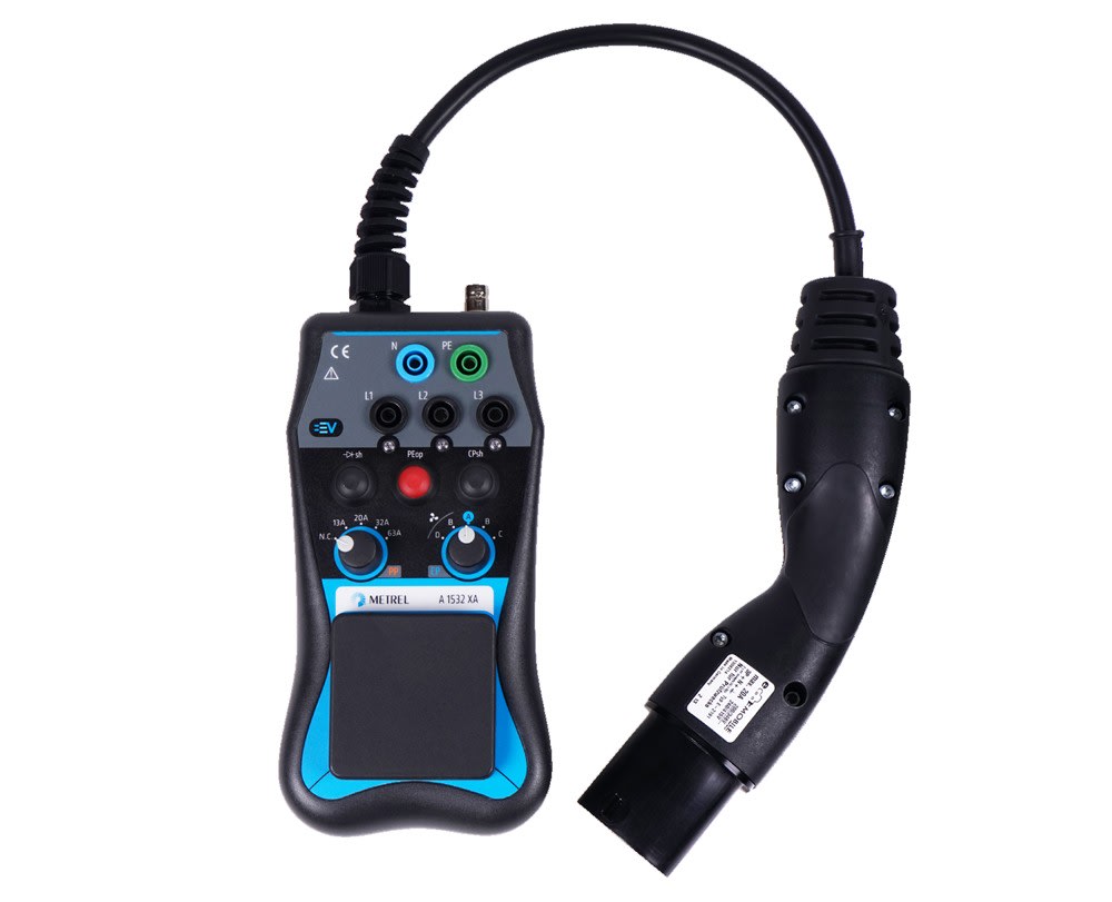 L'accessoire de test A1532-XA est utilisé pour la vérification de la sécurité électrique et les tests fonctionnels des bornes de recharge pour véhicules électriques (IRVE). Il est destiné à tester les équipements de recharge en mode 3 avec un connecteur de type T2. La version XA prend en charge les tests de charge triphasés jusqu'à 13A et différents types d'erreur, y compris PE ouvert. S'il est utilisé avec les AUTOSEQUENCES®, pré-intégrées dans les testeurs multifonctions MW9665 et MI3155ST, la borne de recharge pour véhicules électriques (IRVE) peut être testée (état par état) électriquement et fonctionnellement en appuyant sur un seul bouton. Il est ensuite possible de créer un rapport professionnel via MESM (licence PRO nécessaire).Tests pouvant être réalisés avec le A1532-XA seul:• Détection de présence de tension de la borne (voyant)• Simulation des résistances du pilote PP pour émuler le véhicule électrique avec plusieurs courants de charge• Simulation du statut du VE (déconnecté, connecté en attente, en charge avec ventilation, en charge sans ventilation)• Test et visualisation de la réaction de la borne de recharge en fonction des différentes simulations• Création de différentes erreurs : - Simulation de diode court-circuitée (test de sécurité sur le signal de commande) - Simulation défaut de terre - Simulation de court-circuit entre le signal CP et la liaison PE• Test de charge jusqu’à 13A en monophasé ou triphasé (test des compteurs embarqués dans les bornes)• Diagnostiquez un problème de communication en visualisant les signaux de commande CP envoyés par la borne via un oscilloscopeTests pouvant être réalisés avec le A1532-XA connecté à un contrôleur d'installations:Les contrôleurs d'installations SEFRAM compatibles avec le A1532-XA sont: MW9320, MW9655, MW9660, MW9665 et MI3155ST• Mesure de tension• Mesure d’impédance de boucle• Mesure de la tension de contact• Test de DDR• Mesure d’isolement sur la borne de recharge (hors tension)• Ajout des test visuels dans un rapport (uniquement sur MW9665 et MI3155ST)• Export de tous les tests pour création d'un rapport professionnel (uniquement sur MW9665 ou MI3155ST)