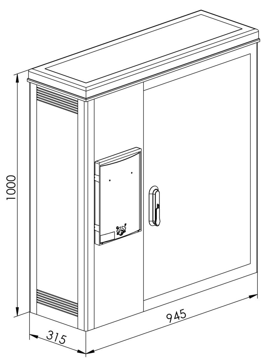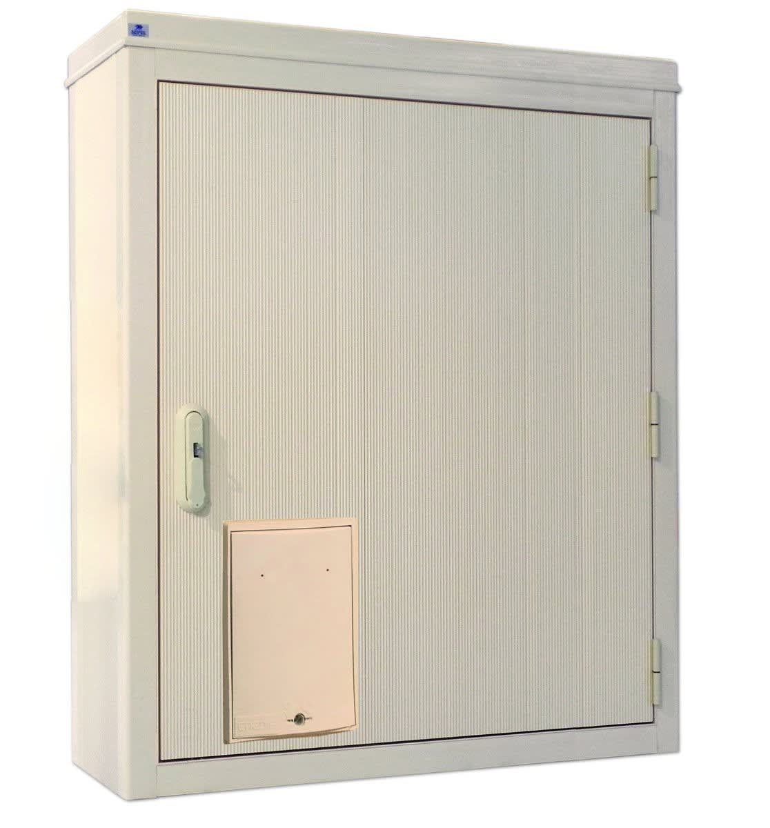 Armoire CARAIBES - en matière compound thermoplastique pour 2 tableaux 830x250 mm avec un coffret CIBE® triphasé + neutre positionné en façade de l'armoire - 1 porte - 1 compartiment
