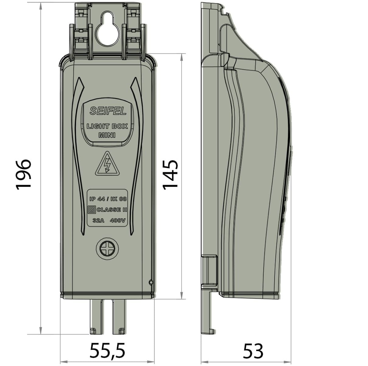Seifel - Boîtier classe 2 de façade LIGHTBOX Mini 1 CC 10x38 Uni+N+Parafoudre - gris - 48175