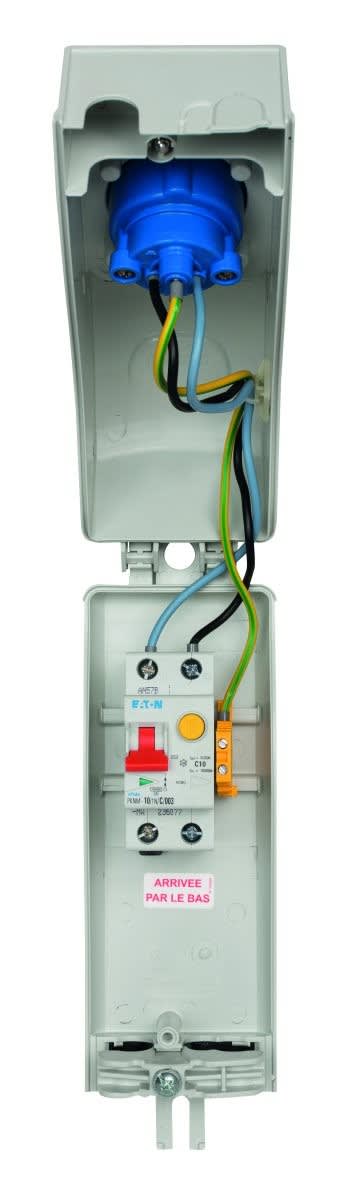LightBox - Boîtier d'illuminations équipé d'une PC CEE + un disjoncteur différentiel uni + neutre 10A - 30 mA + un bornier de terre isolé 4 mm² max - couleur grise