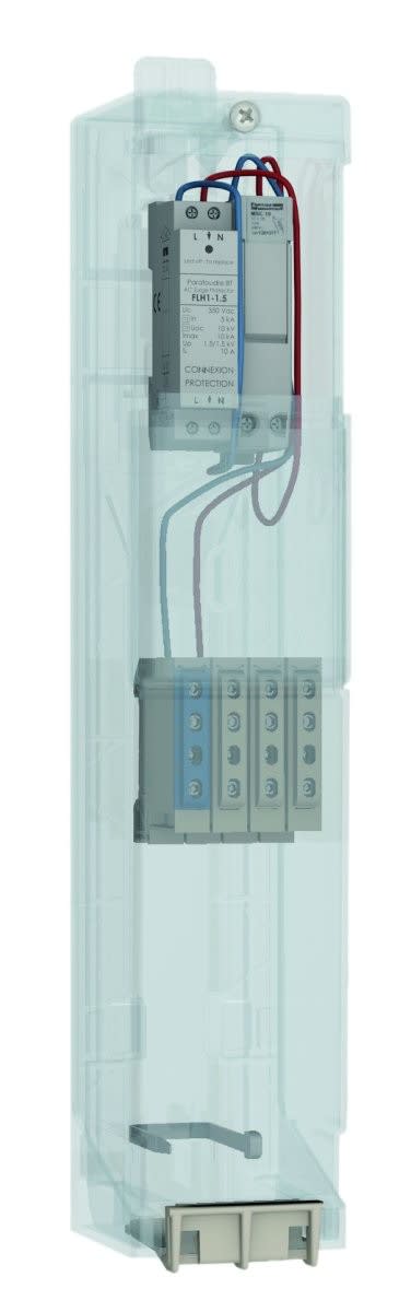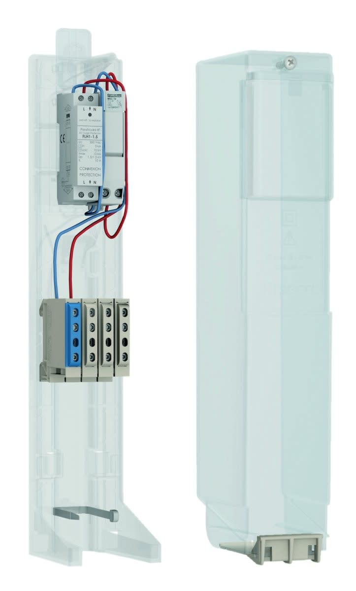 StreetBox L BS13 2RD - Boîtier de candélabre double rails DIN (2RD) + un coupe-circuit 10x38 uni + neutre + un parafoudre type 2-3 et d'un bornier tétra - 4 bornes simples - raccord.t 3x16 mm² maxi - cache et cartouche 4A fournis