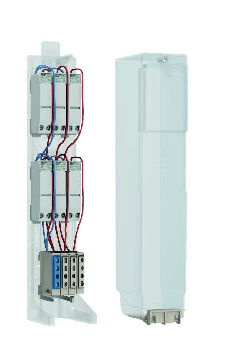 StreetBox L BS13 2RD - Boîtier de candélabre double rails DIN (2RD) équipé de 6 coupe-circuits 10x38 uni + neutre et d'un bornier tétrapolaire constitué de 4 bornes simples - raccordement 3x16 mm² maxi - cache et cartouches 4A fournies