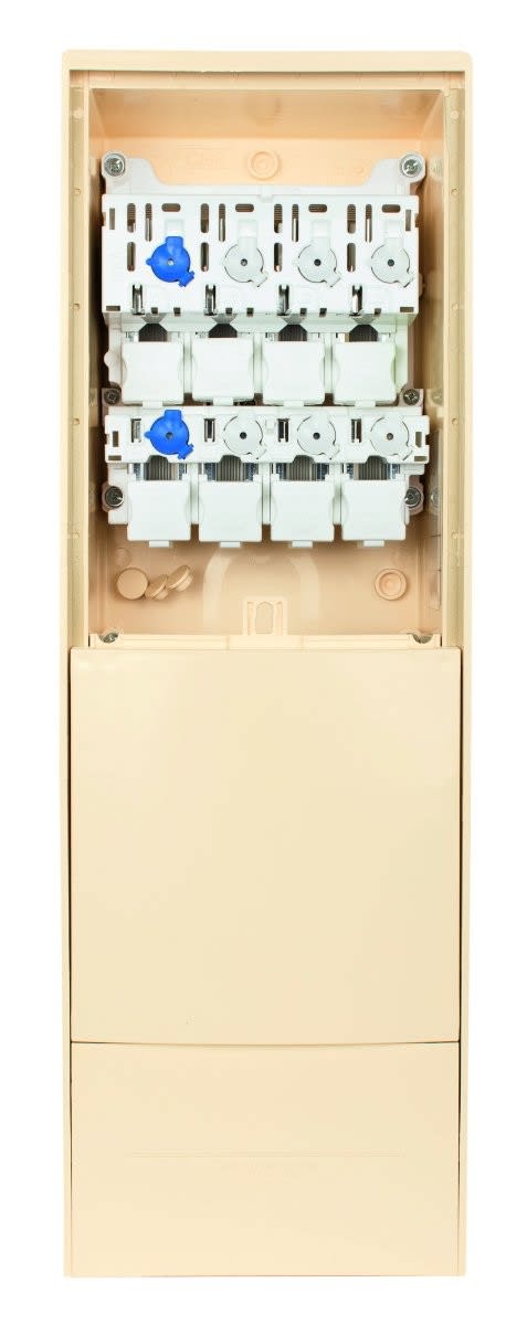 Borne C100P100 avec embase téléreportCoupure 100 A ou protection 100 A par barrettes ou fusibles AD Taille 00Serrure TriangleColoris IvoireSigle Eclair