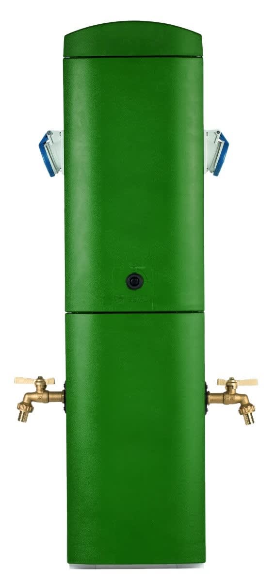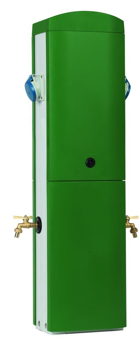 Borne CEZEMBRE Camping - Version Radier équipée de : 2 prises de courant Mono 10A + 2 robinets 1/4 de tour + 1 bornier tétra double - Couleur Verte