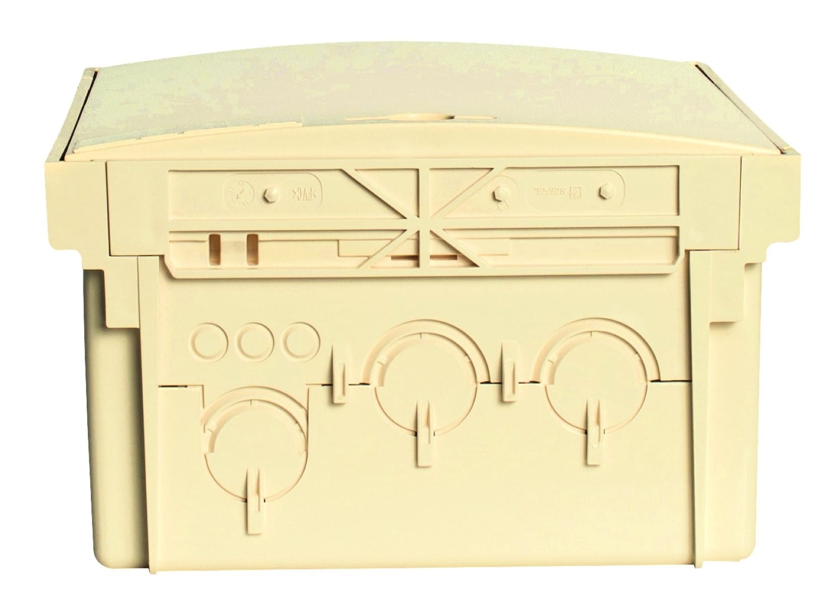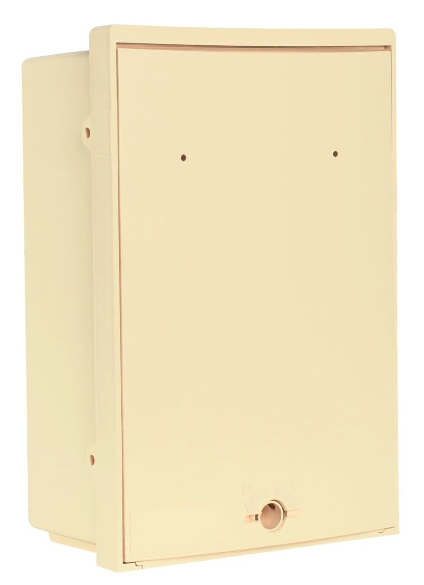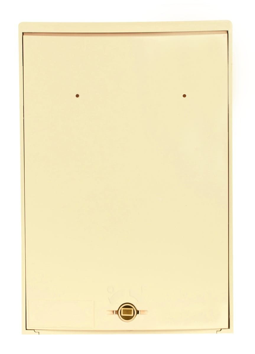 Coffret CIBE® :Dimensions extérieures du coffret : H 340 L 230 P 128 mm.Fermeture réalisé par un loquet RectangleIndice de protection : IP 43IK 10.Couleur : ivoire.Equipé de :1 rail DIN1 coupe-circuit uni + neutre