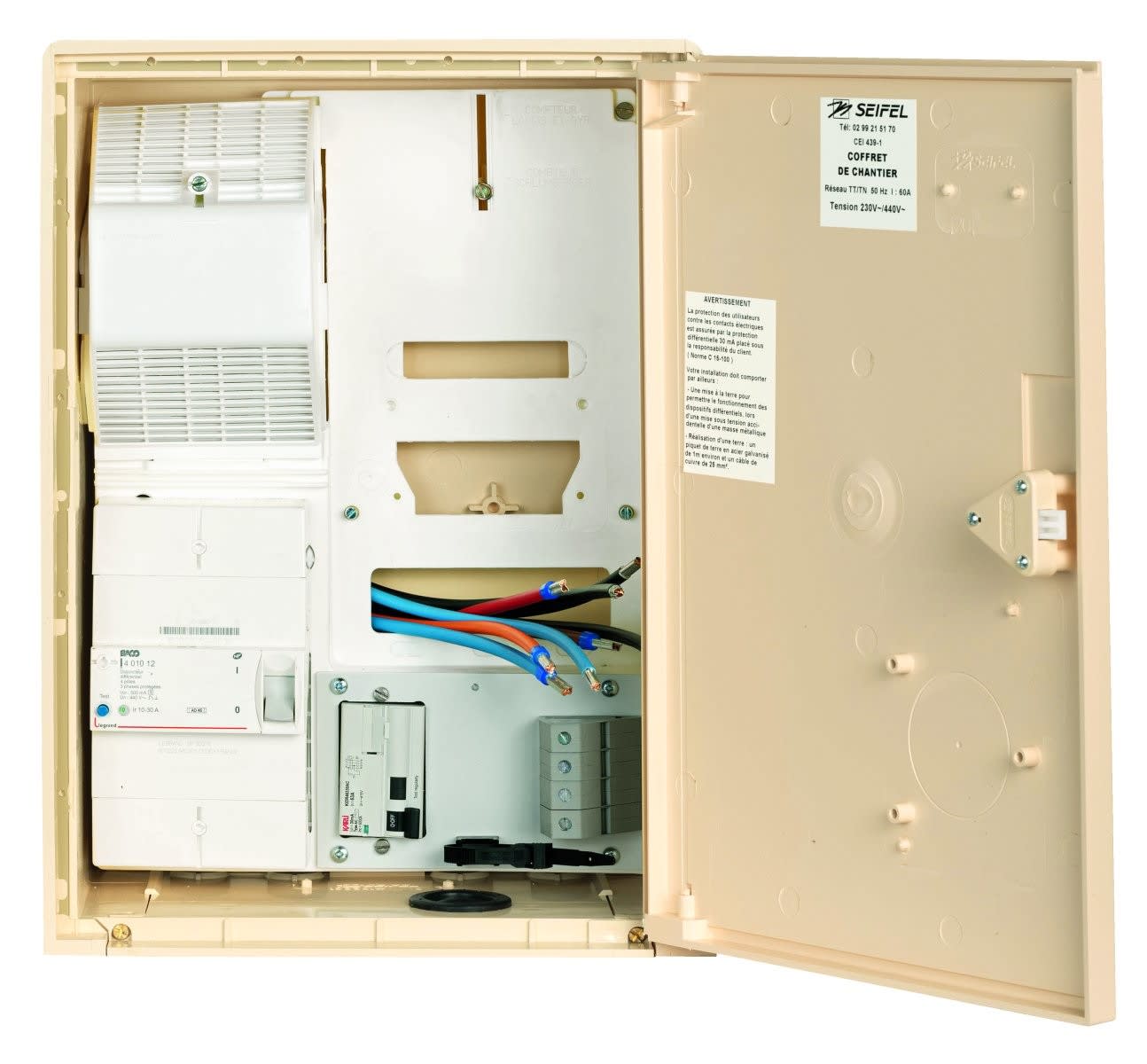 Seifel - Coffret S20 Tri+N + DB 10/30 A 500 mA S + Inter Diff 4x63A-30 mA + bornier - 80000