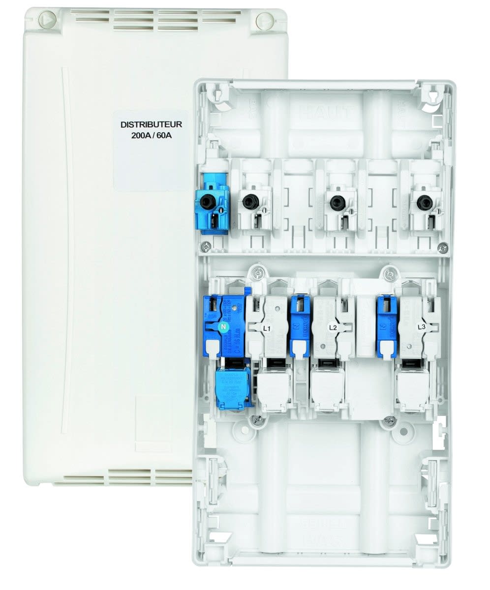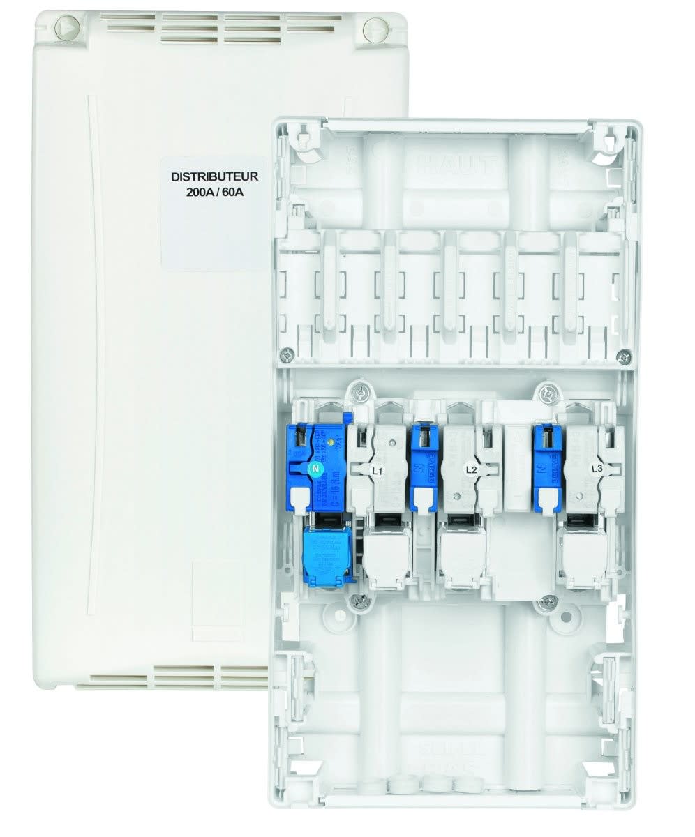 Caractéristiques :Distributeur variante arrivée 200AConnectique à perforation d'isolantCapacité : 3 dérivations individuelles monophasées ou 1 dérivation individuelle triphasée + neutreSigle Enedis