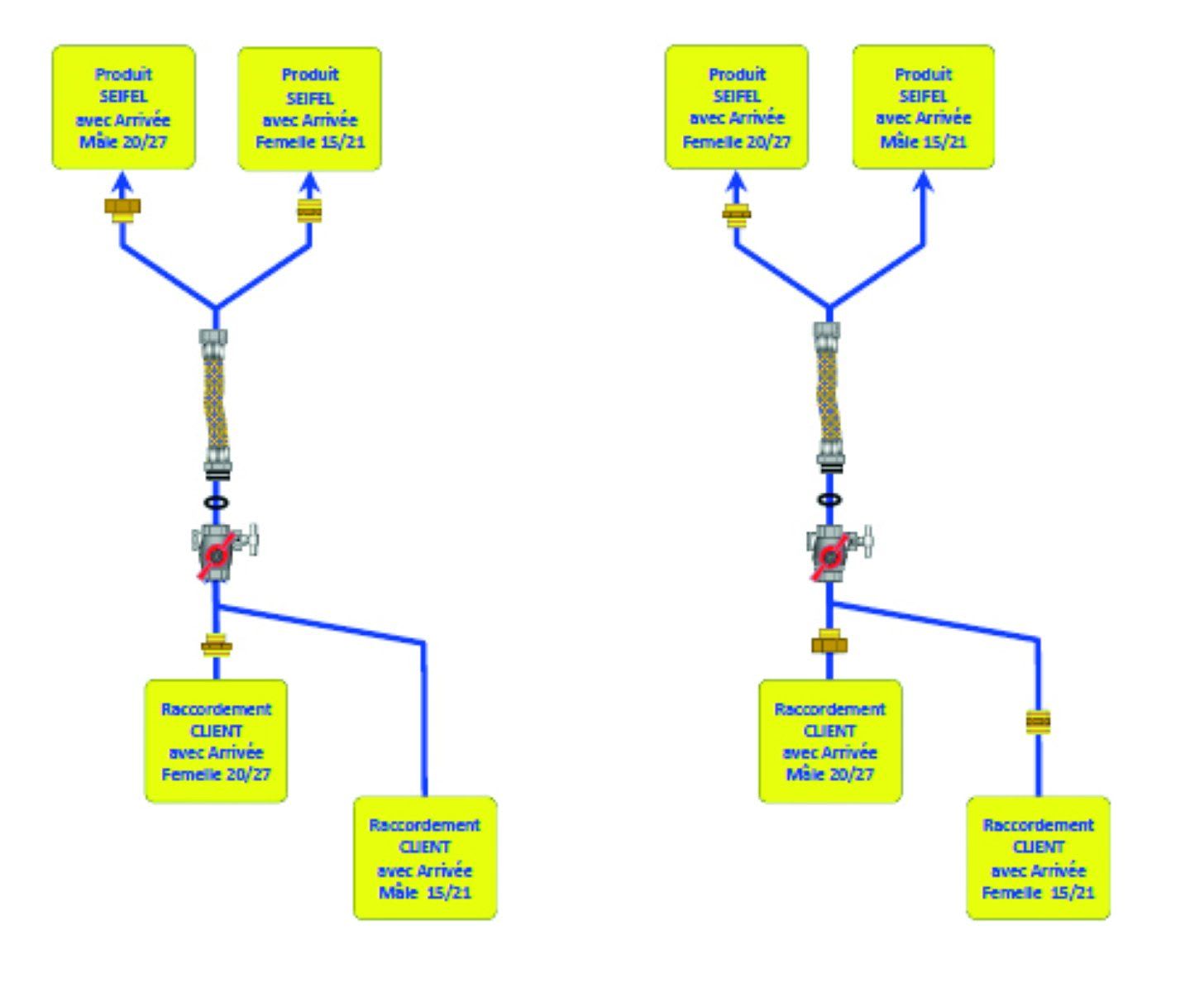 Kit vanne d'arrêt :1 vanne 1/4 de tour FF15/21(1/2)+purge-papillon1 mamelon M(15.21)/F(20.27)1 mamelon M(15.21)/M(15.21)ACS1 joint caoutchouc 15x211 flexible MF15/21-150mm-DN15(70lmn/3BAR)-G.INOX eau potable1 mamelon M(20.27)/M(15.21)