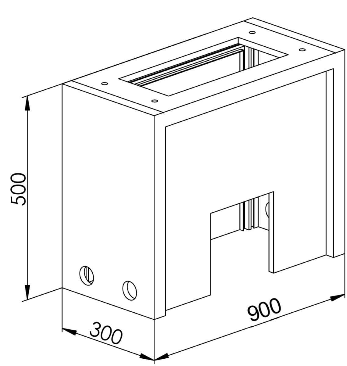 Caractéristiques spécifiques du socle à poser en tranchée :Dimensions extérieures : H 500 L 900 P 300 mm.Passages de câbles sur le dessus, les faces avant et arrière.Visserie de fixation armoire sur socle fournie.Coloris : ivoire.