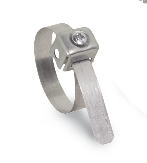 bride assurant la liaison équipotentielle ;systéme de serrage à double effet,une seule opération pour serrer le fil de masse et la bride sur le câble