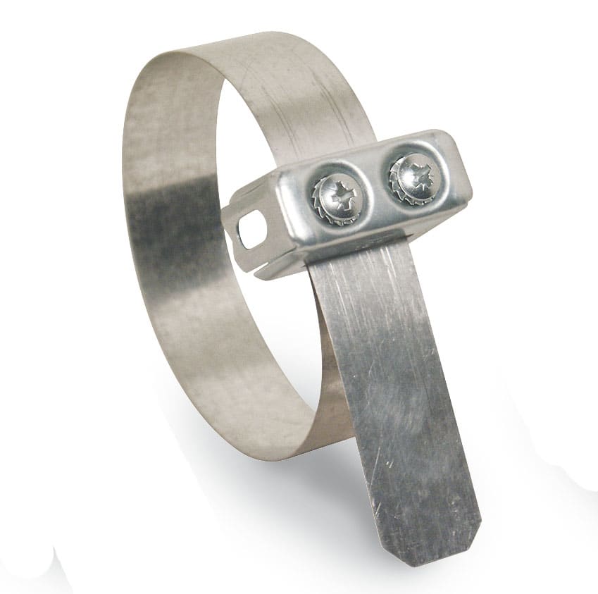 bride assurant la liaison équipotentielle ;systéme de serrage à double effet,une seule opération pour serrer le fil de masse et la bride sur le câble