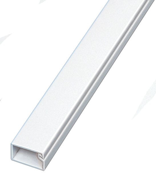 goulotte miniature avec couvercle ; perforation du fond et adhésif pour la fixation de la goulotte