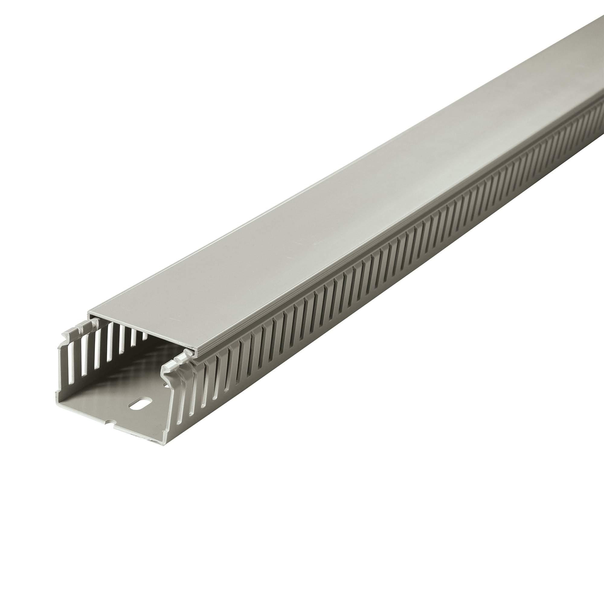 goulotte avec fentes latérales pour permettre le passage des fils et perforations du fond pour fixation