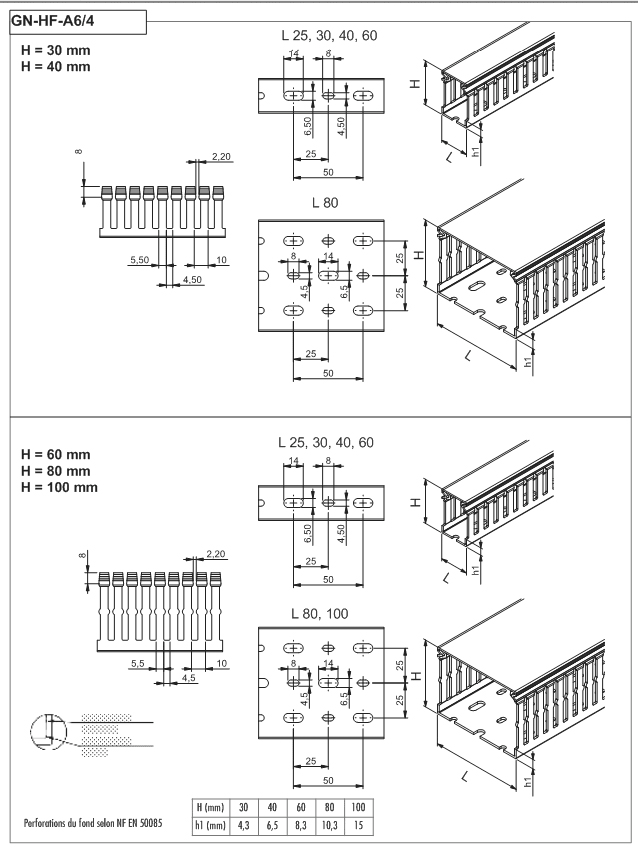 Notre goulotte de câblage GN-A6 / 4 LF est en PVC sans plomb. La goulotte est fabriquée exclusivement en gris RAL7030. La température de fonctionnement est de -5 à + 65 ° C et répond à la norme UL94V0 (Tenue au feu). Bien sûr, elle est conf