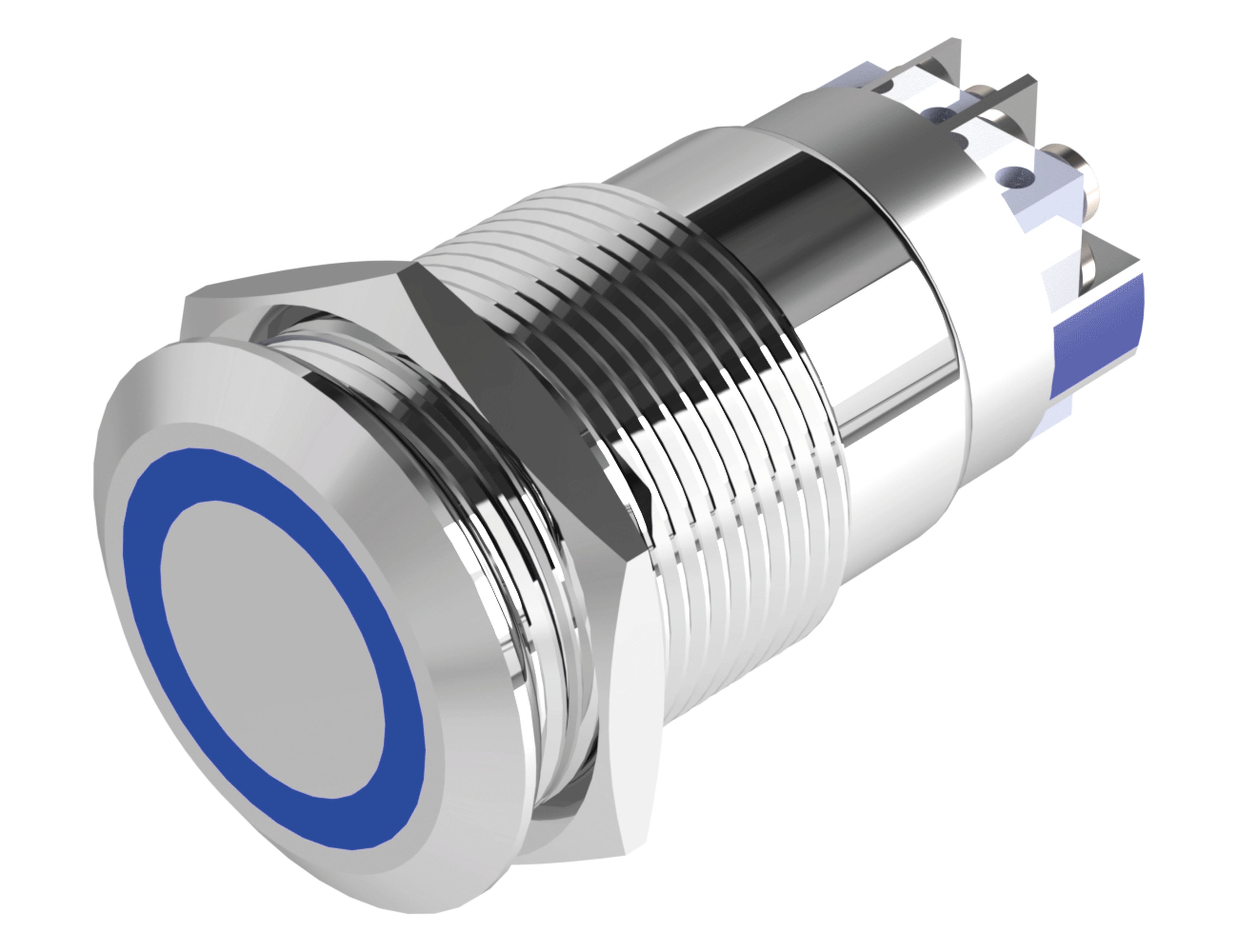 Sewosy - Bouton poussoir INOX bleu 19 mm NO+NC 12V DC bornier à vis - PB19NO+NC_B12_ST