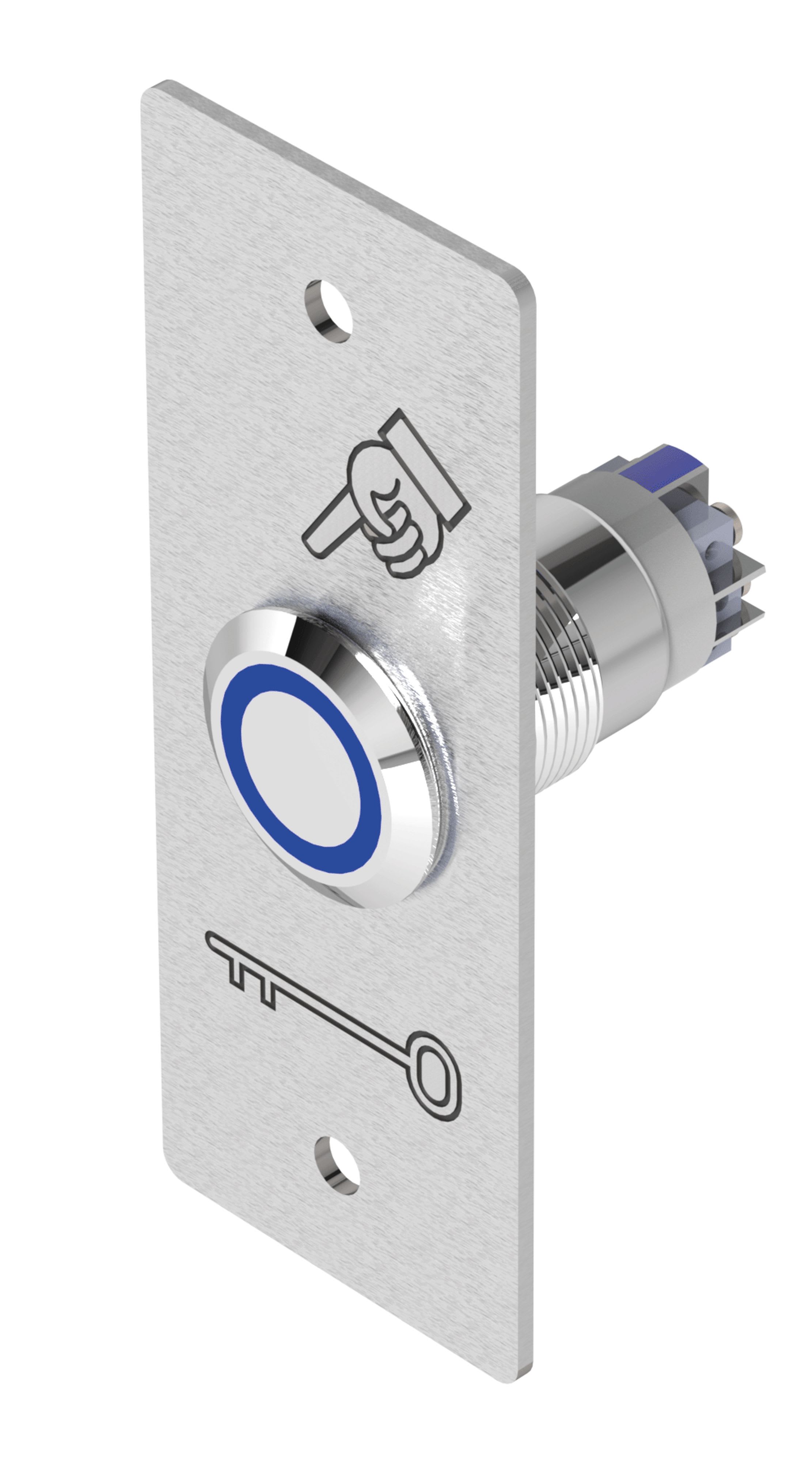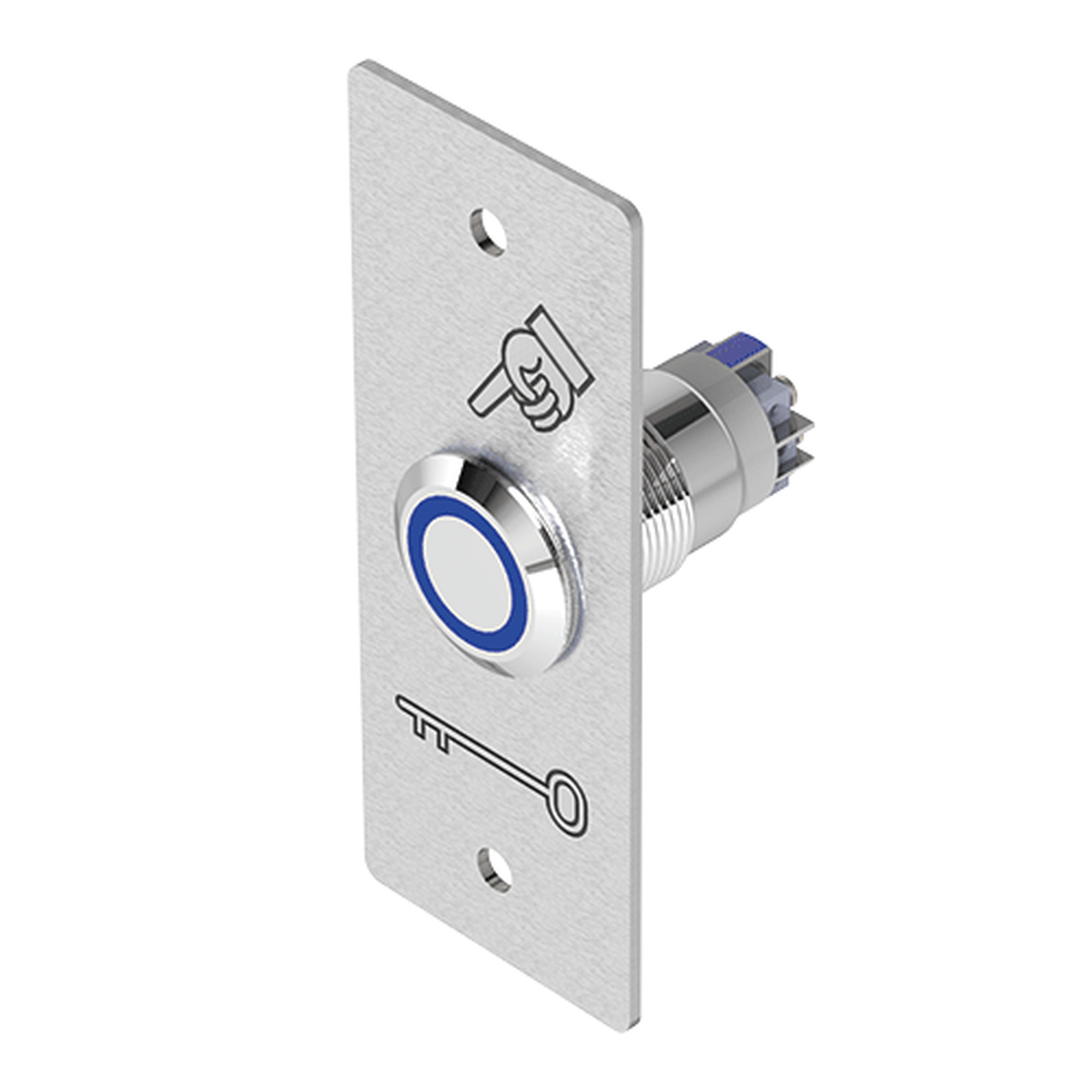 Sewosy - Bouton poussoir INOX bleu 19 mm NO+NC 12V DC bornier à vis - PB19NO+NC_B12ST_SI