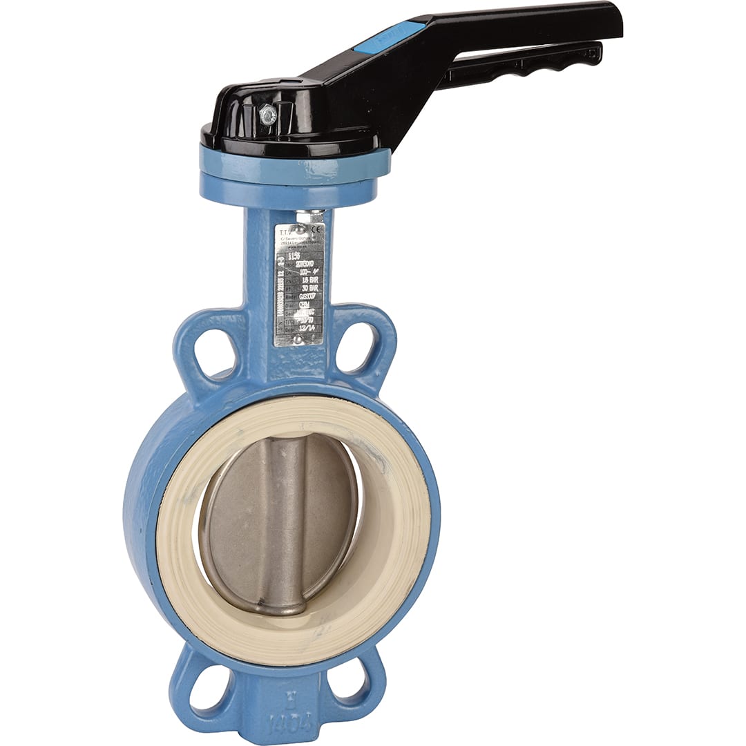 Vanne papillon à oreilles de centrage (Wafer) TTV gamme excellence Série 1156 avec corps fonte, papillon inox, manchette NBR blanc pour les réseaux de graisses et d'huiles, DN200 PN10/16 Class 150, à levier, garantie 10 ans