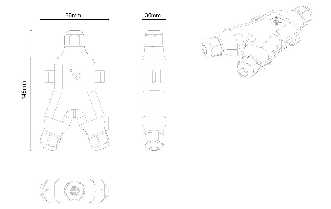 SG Lighting - Boîte de gel en forme de Y étanche avec connecteur IP68 - 78741