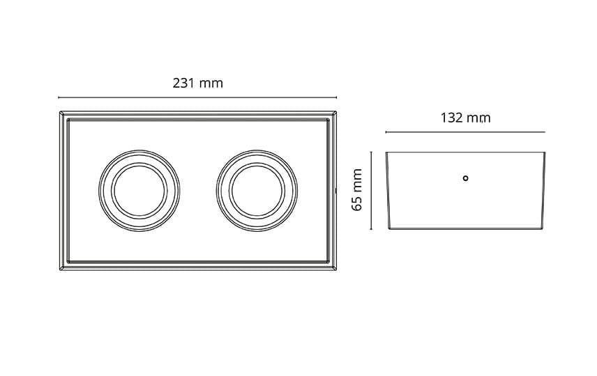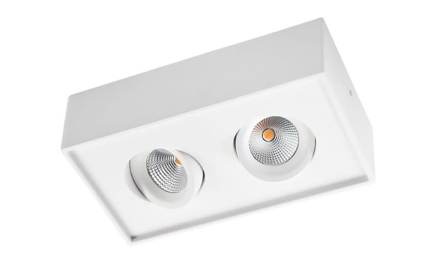 Cube Lux downlight en saillie DTW blanc LED 2x6W 50000 heures 2000-2800K 1010 lumens 68 lumens/W coupure de phase IRC >95 SDCM 3 durée de vie : L90/B10>50 000 heures UGR <21 aluminium et verre clair 230V classe I IP20