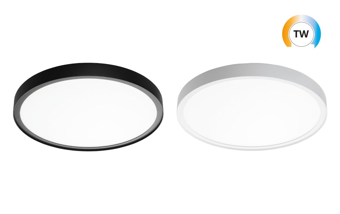 Disc 480 TW luminaire en saillie au profil effilé blanc LED 36W 2000-4000K 3970 lumens (4000K) 110 lumens/W TW LEDDIM IRC >80 SDCM 3 durée de vie : L80/B20>100 000 heures UGR<22 faisceau 85° aluminium et PMMA 230V classe II IP20
